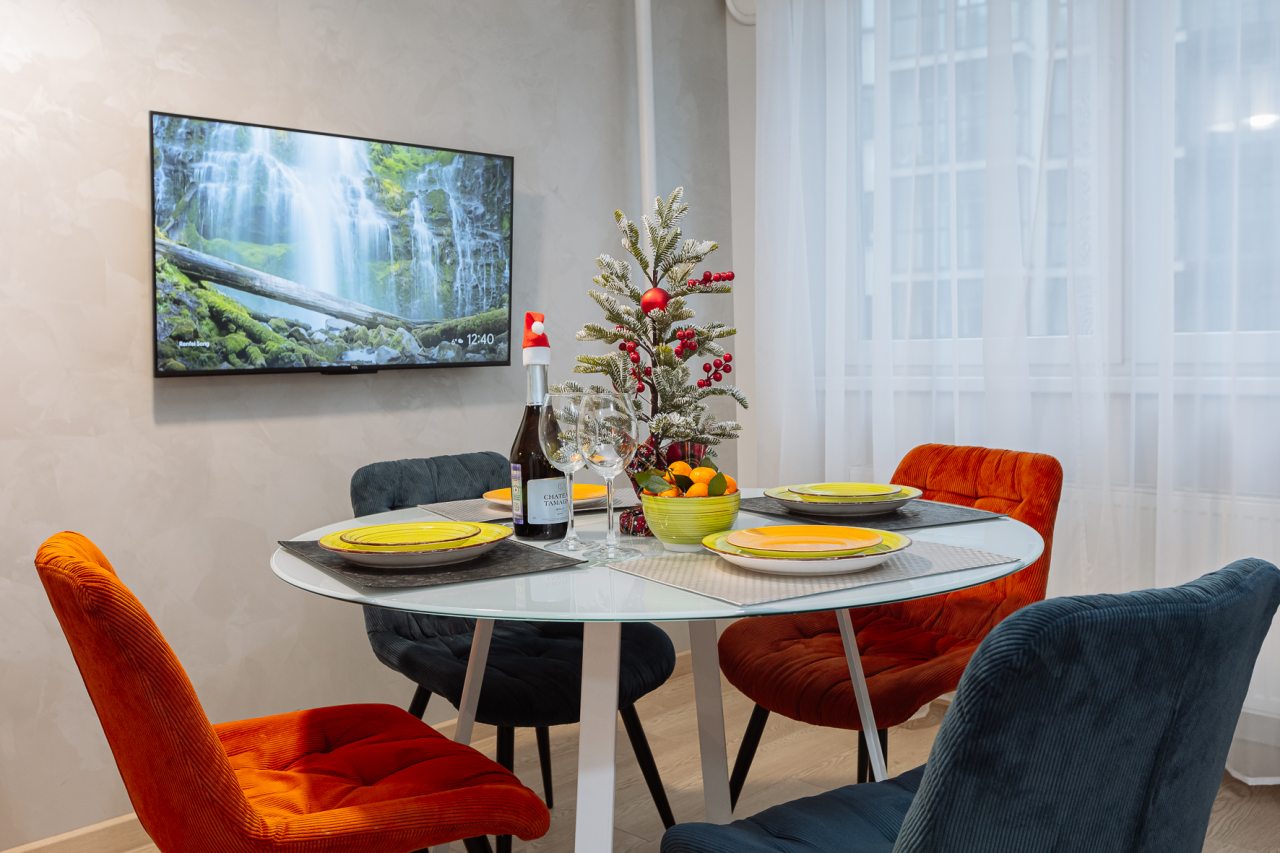 Очень приятные апартаменты, проживали тут всего 2 дня, а столько впечатлений. Во-первых, качественный ремонт, хорошая мебель и качество уборки. В такой квартире отдыхать одно удовольствие. Во-вторых, расположение весьма удобное, достопримечательности и основная инфраструктура в шаговой доступности. Ну и локация в принципе очень красивая и достаточно спокойная.