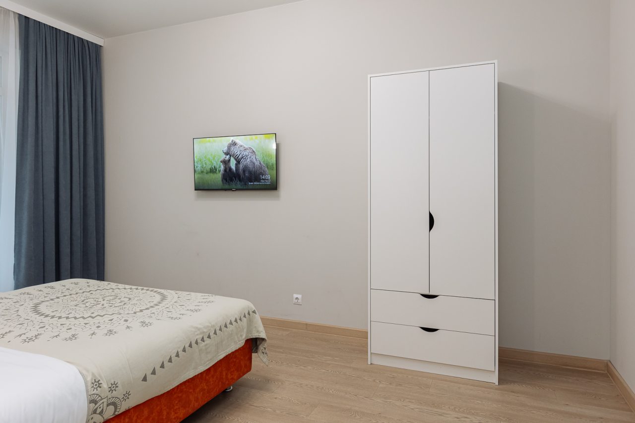 Прекрасно провели свой отпуск благодаря апартаментам у реки. Выбрали номер класса Комфорт и остались в восторге). Апартаменты были подготовлены к нашему заезду. По оснащению все как на фото. Есть все необходимое для проживания на длительное время. С радостью порекомендуем знакомым).