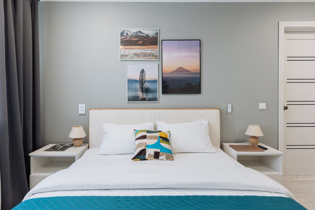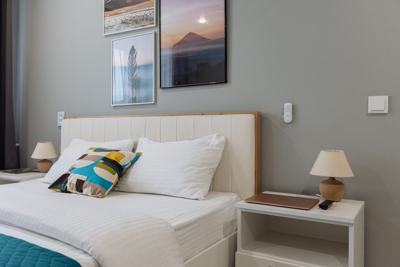 Замечательные апартаменты поразили прекрасным внутренним убранством, гармоничностью обстановки и тщательной планировкой всех помещений. Просторные и светлые комнаты располагают к отдыху, приятная атмосфера помогает расслабиться. Элегантная мебель удачно вписывается в общий интерьер, функциональные зоны продуманы хорошо. Чистота поддерживается на высоком уровне, гигиенический порядок идеальный. Несколько проведенных дней запомнились надолго.