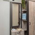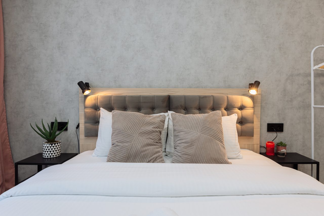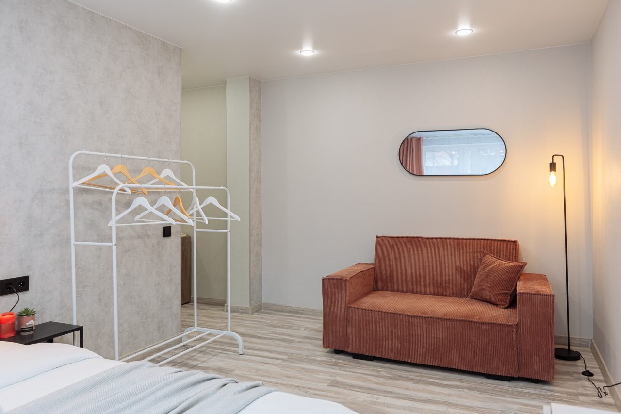 Интерьер стильный, со вкусом, чувствуется, что всё сделано с душой. Вечером уютно включить подсветку и устроиться с чашкой чая у окна. Кровать удобная, подушки мягкие, спится спокойно. В кухонной зоне всё аккуратно, можно быстро приготовить завтрак. Ванная современная, без запахов, чистая плитка.