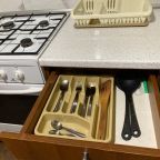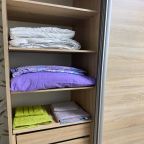 Спокойные комнаты с приличным набором мебели. Ванная комната оформлена в белые тона. В ней были приготовлены для нас все необходимые средства гигиены. Санузел чистый, аккуратный. В комнатах светло. Кухня насыщенна техникой, много разной посуды. Все опрятно. Пользовались интернетом, он быстрый и бесплатный.
