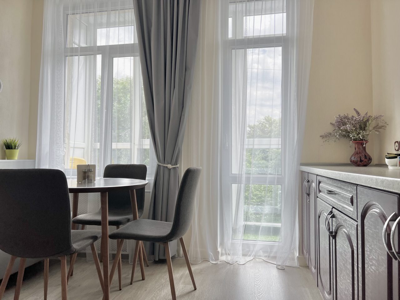 Квартира расположена в старой части города, что придает особый колорит. Внутри чисто, ремонт аккуратный. Удобно, что рядом остановки, легко добраться в разные районы. Квартира светлая, окна большие. Все выглядит ухоженно, приятно находиться. Обстановка спокойная и располагающая.