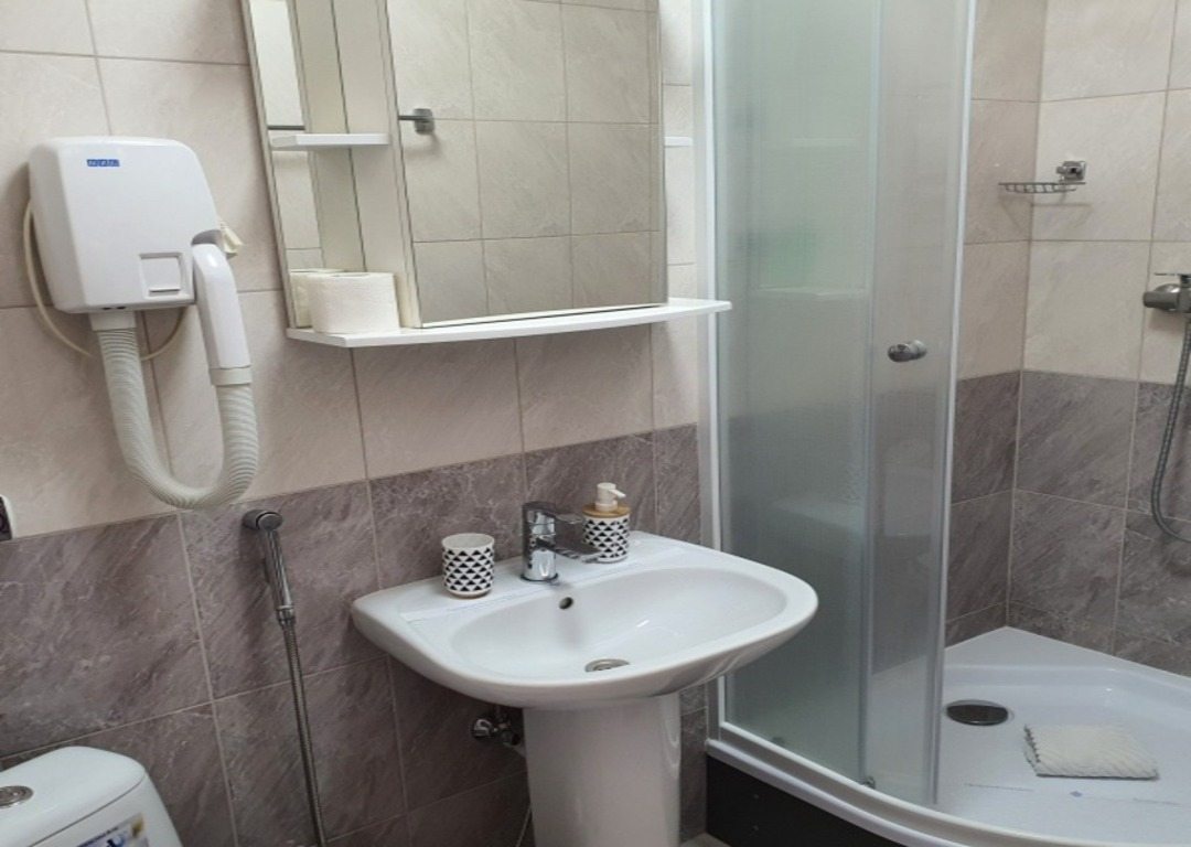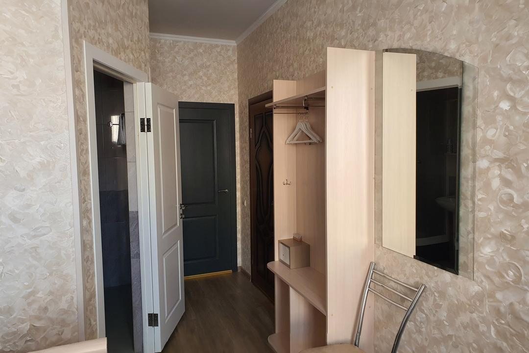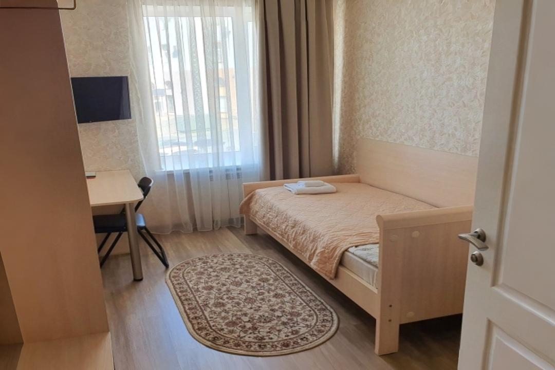 Гостиница небольшая, расположена в центре города, достопримечательности находятся не очень далеко. Если любите гулять, можно пешком дойти практически до всех. Про вид из окна:двор с машинами. Персонал Гостиницы вежливый, доброжелательный. Номер большой, двухкомнатный, все есть для комфортного отдыха, чайник, халаты, тапочки. Сантехника в санузле чистая, исправная. Конструкция кровати удивила, собрана из двух, экономия и сообразительность. На качестве сна не отразилось. Матрас и подушки хорошие, мягкие, комфортные. Постель чистая, за 8 дней меняли один раз. Должны были два раза. Но не критично.