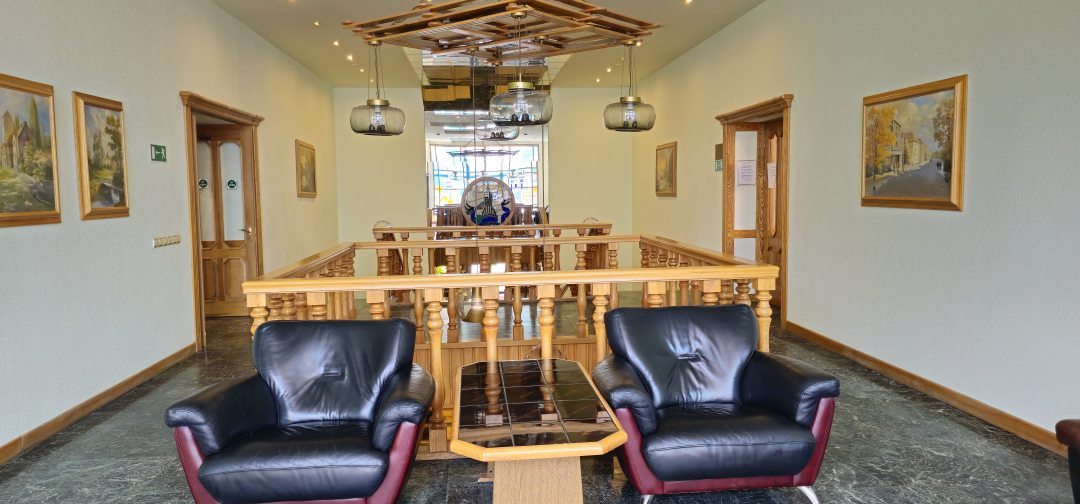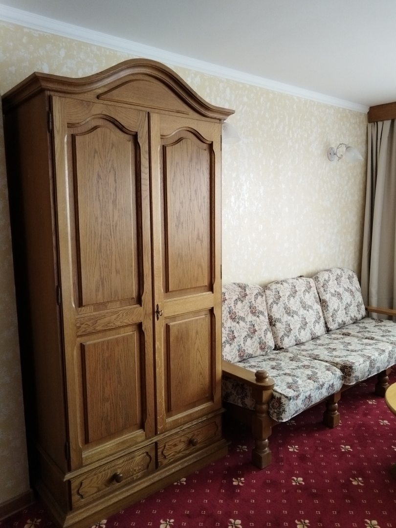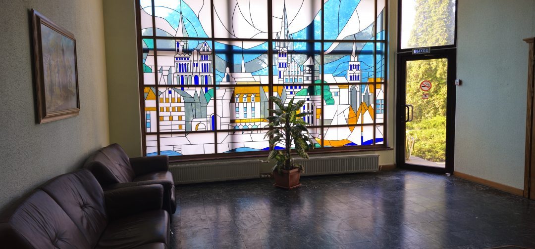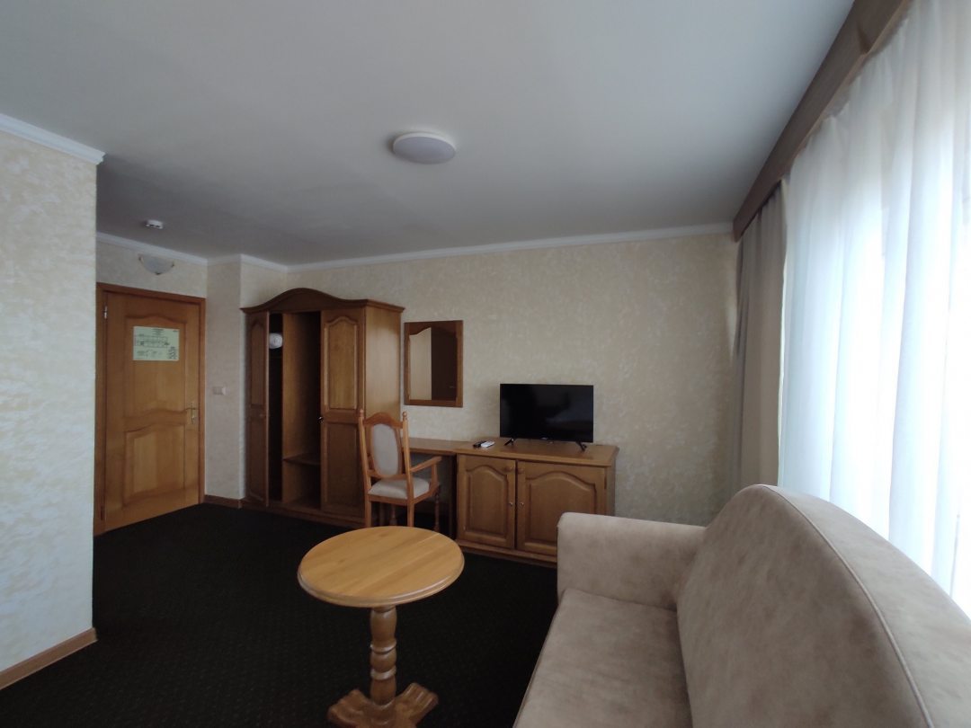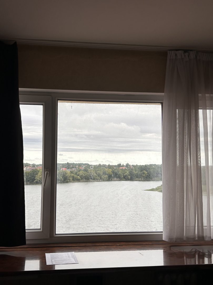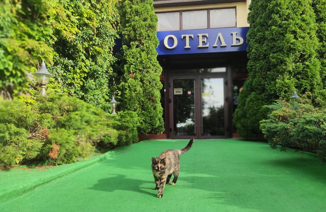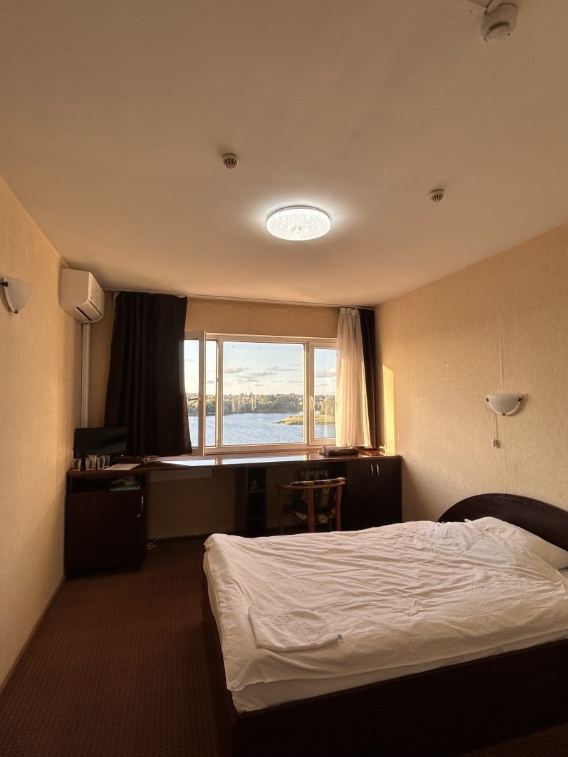 Отель оставил очень хорошее впечатление. Вокруг красивая природа, река, закат, тишина. Номер большой уютный, чистый. Мебель, конечно, уже требует замены, так как ей много лет. Кровать двуспальная жестковата так же как и подушки и хотелось бы размер кровати больше. Расположение удобное для тех кто прилетает в Калининград на самолёте, минут 25-30 до аэропорта на такси. В центр города так же удобнее добираться на такси (минут 15-20). Персонал дружелюбный, приветливый, отзывчивый. Завтраки вкусные. Качественные продукты. В отеле есть ресторан, где можно очень вкусно пообедать, поужинать. В отеле Вас встречает и провожает всегда кот) житель отеля) Мы бы рекомендовали этот отель:)