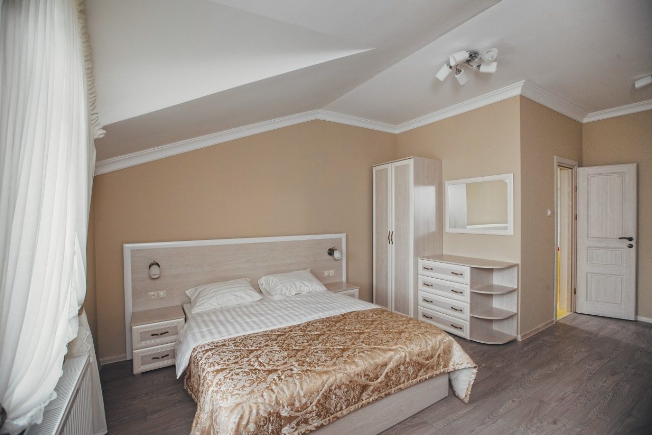 Отдыхали в 4-х местном номере эконом 2 ночи, в реальности номер гораздо лучше, чем на фото. Просторный номер, новая мебель, отличные кровати с хорошими матрасами и бельем, для каждого гостя приготовлены тапочки, чего обычно в эконом номерах не бывает. Единственный минус, он находился в цокольном этаже, но и цена за номер за троих была всего 4 тыссут. Сам отель оставил тоже наилучшее впечатление! Внимательный персонал, сам хозяин на подхвате, всем помогает, очень внимательный к гостям, сам нас ночью встречал в аэропорту, помогал донести до номера чемоданы, проверил готовность номера, все ли в порядке. Такой европейский стиль управления, когда хозяин включен в процесс, сам и контролирует, и помогает персоналу. На завтрак шведский стол тоже порадовал, для маленького отеля достаточно разнообразно, очень вкусный кофе, очень все чисто. Спасибо большое, что наше знакомство с Калининградской областью началось с такого гостеприимного дома!