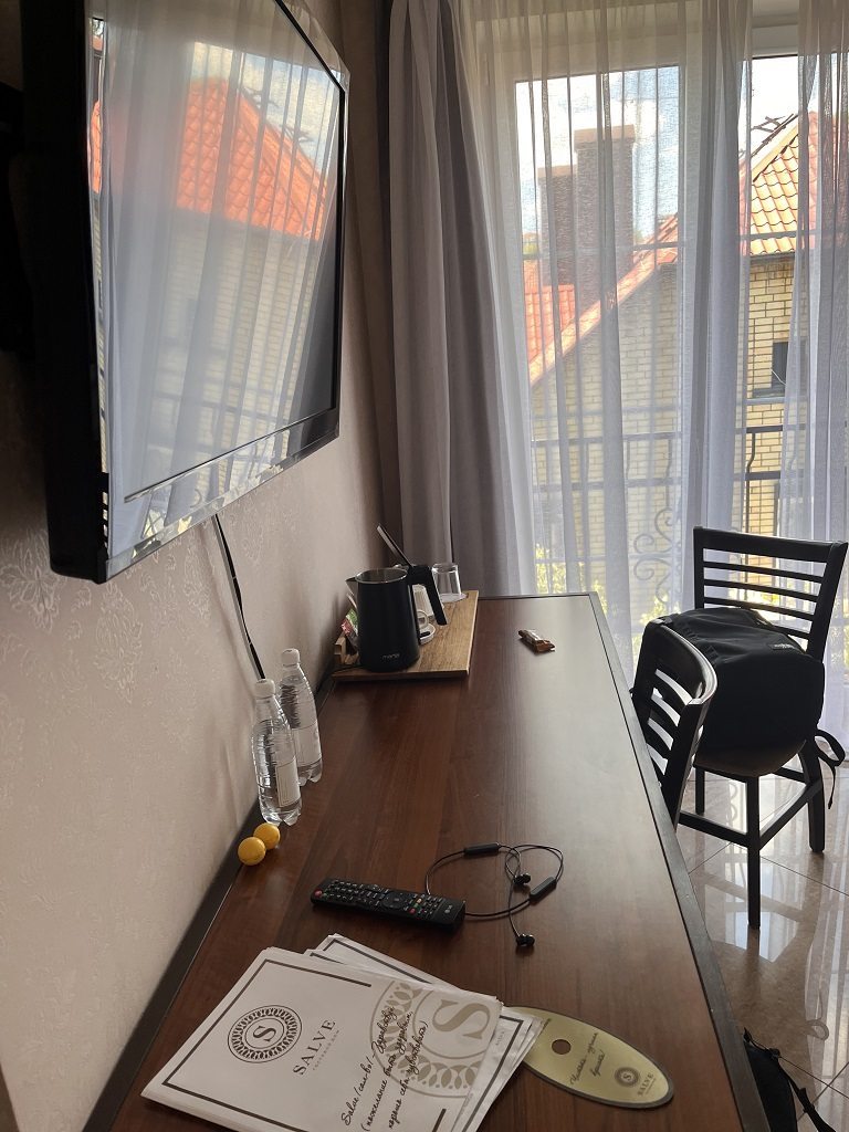 Отель нам сразу понравился, уже на стойке нас встретили приятные и вежливые администраторы, с которыми мы вместе подобрали номер. Расположение удачное, вдали от центра, тихо и спокойно. Есть парковка, что очень удобно. Номер приятный, оборудован всем необходимым, интернет работает, есть чистые полотенчики. Советуем!