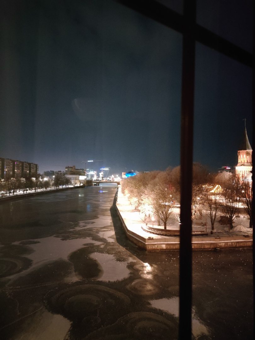 Только вчера вернулась из Калининграда. Отдыхали в отеле У медового моста. Вежливый приятный персонал. номера не большие, но всем укомплектованы - холодильник, чайник, посуда, фен, гигиенические средства. Очень понравилось, что выходишь сразу на набережную реки Преголя, гулять и днем и вечером замечательно. Подряд сплошные не большие ресторанчики. окно выходило на Октябрьскую улицу, прямо напротив Синагога, в 100 м. остров Канта, Кафедеральный собор.