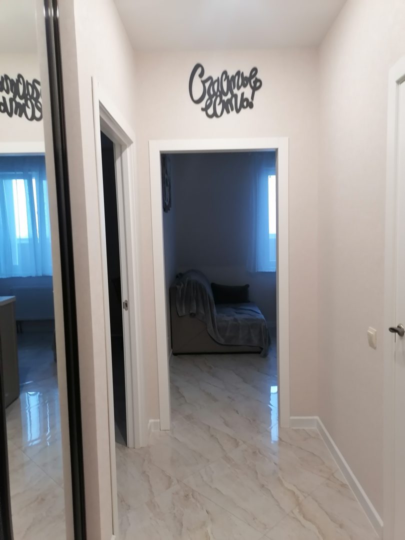 Светлая красивая квартира со свежим ремонтом и уютным обустройством. Выбрали мы ее на сайте. Понравилось и то, как сделана кухня, спальня. Также хочется отметить наличие балкона с отделкой. С него и вид открывается хороший, и можно обустроить зону для отдыха. Оформление санузла тоже очень понравилось. В коридоре вмонтирован большой шкаф-купе, так что вещи у нас под ногами не стояли. Отличная квартира, к которой замечаний нет никаких.