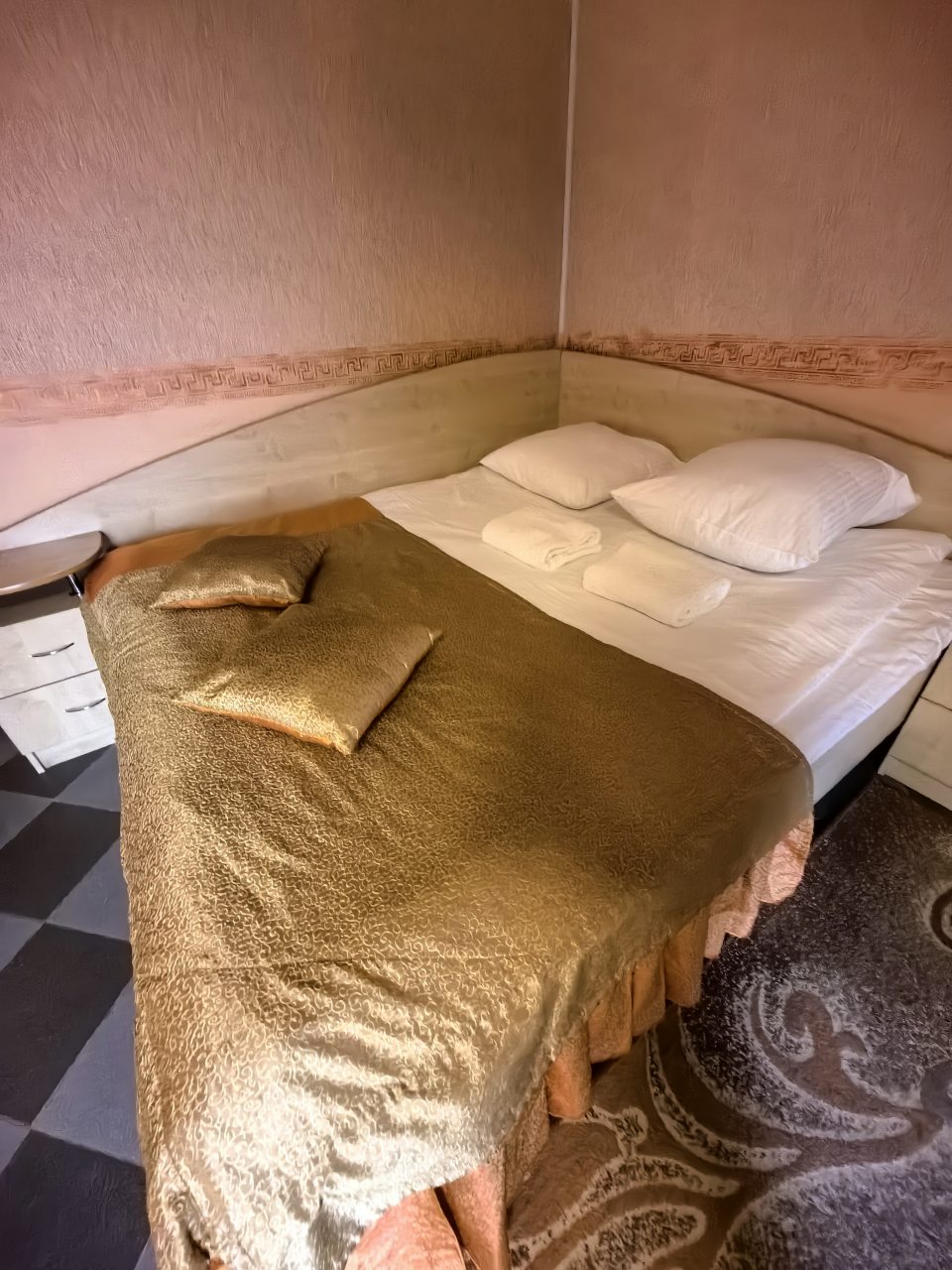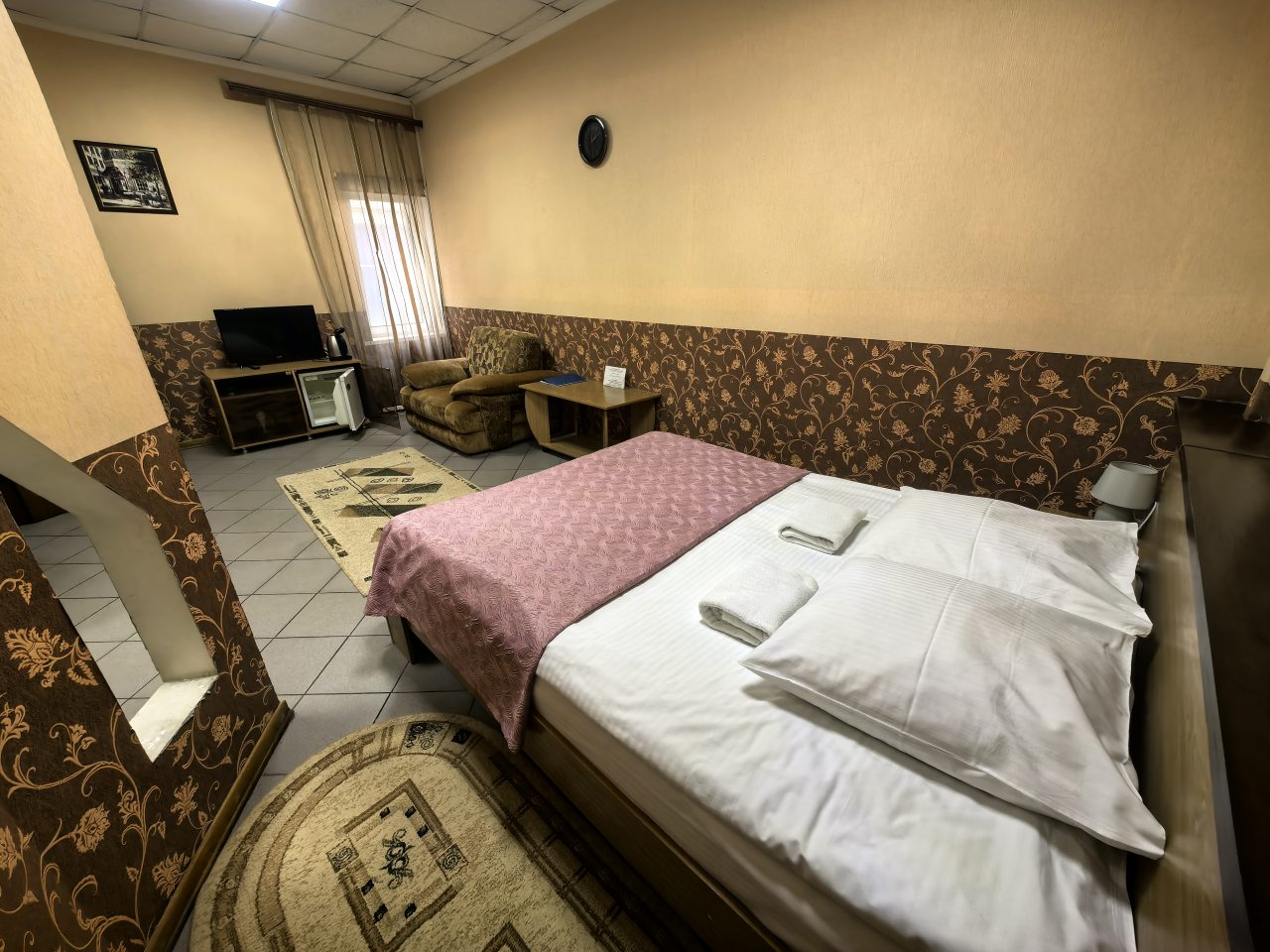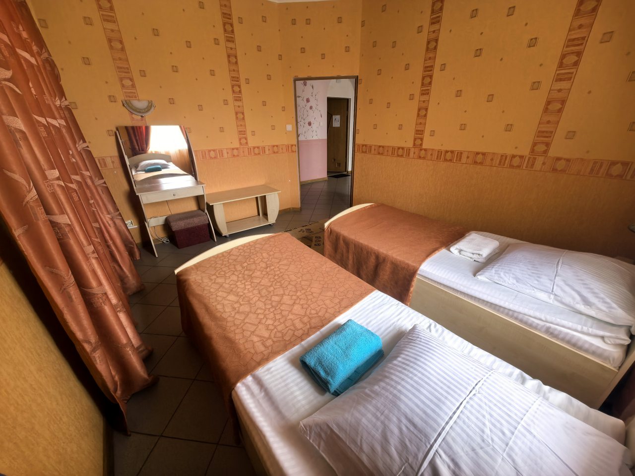 Чистота гарантирована. Номера новенькие, всё в рабочем состоянии. Кровати удобные, в номере наличествует тв, чайник, холодильник, минимальный набор посуды. Внизу есть мини кухня. Для жизни с комфортом всё предусмотрено. Можно не просто голову преклонить, но и провести время за чашкой чая.