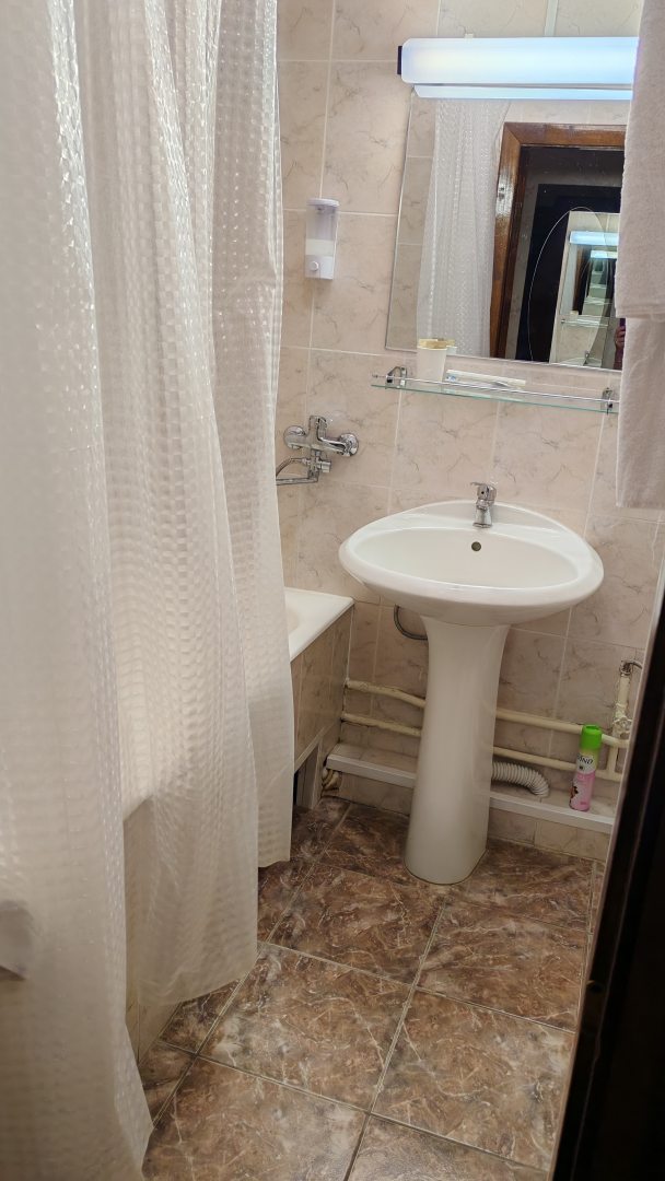 Отель расположен в центре города. От ЖД вокзала до отеля и вообще по городу транспорт ходит очень хорошо. При заселении возникла проблема с ценой при давнем бронировании, но все решилось хорошо. При выезде разрешили задержаться в номере. Номер большой, все необходимое есть, кроме фена(но он мне не понадобился). Звукоизоляция хорошая. Осталась довольна.