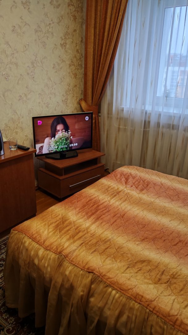 Вежливый персонал, чистый номер, отличное расположение. В гостинице есть кафе (график работы :7:30 - 21:00), можно вкусно и недорого покушать. Есть большая автостоянка (бесплатно).