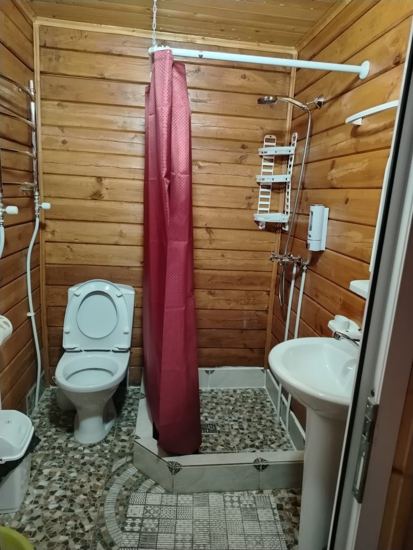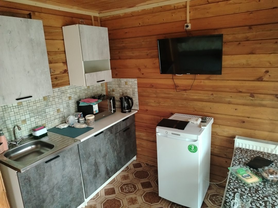 Из недостатков: одно пожелание: поставить в кухне домика хотя бы маленькую эл.плиту: пельмешки сварить или яишенку поджарить с утра. А то, вроде кухня в домике есть, но готовить можно только во дворе на мангале, либо разогреть в микроволновке. Ну или с утра нечесанной и неумытой тащиться на общую кухню, пожарить яишенку, толкаясь попами с другими сонными тетями