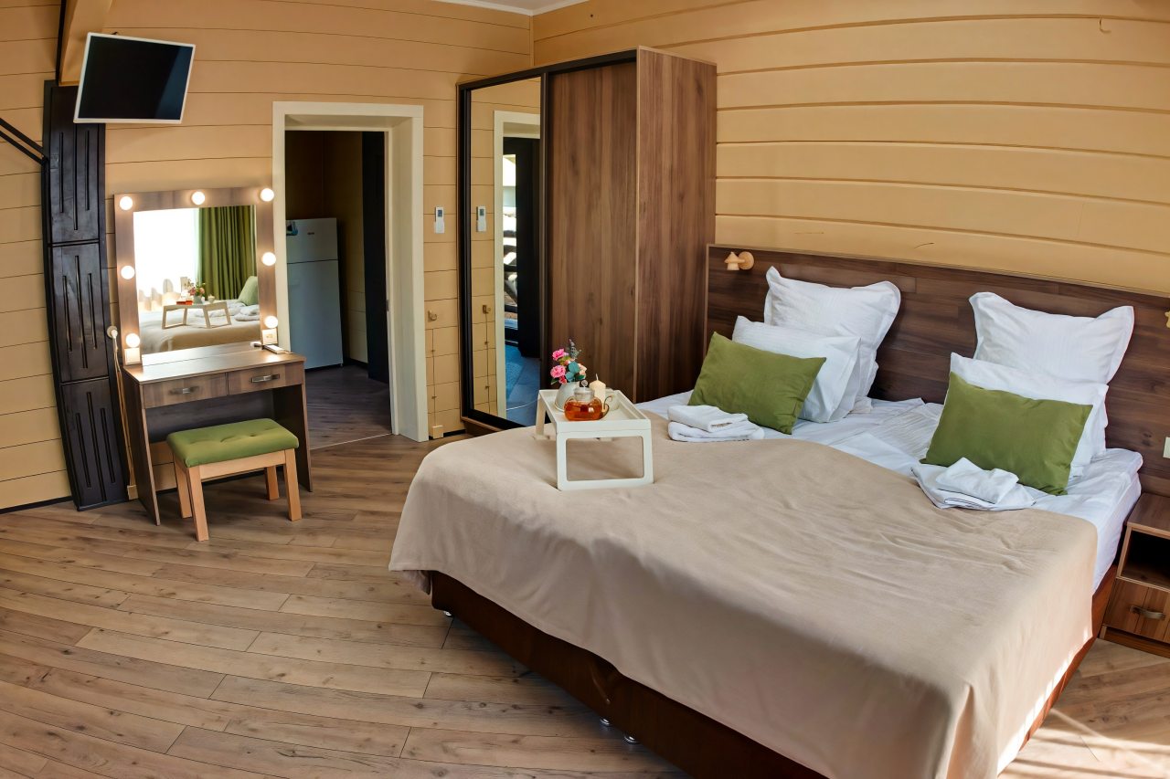 Отель супер жили в коттедже, очень клево своя территория, бассейн, мангал... Сам коттедж очень хороший, пепло, чисто, уютно, как дома. Есть всё необходимое. Хотелось бы дорогу до отеля получше так как погода дождливая и едешь по грязи, машина просто пипец
