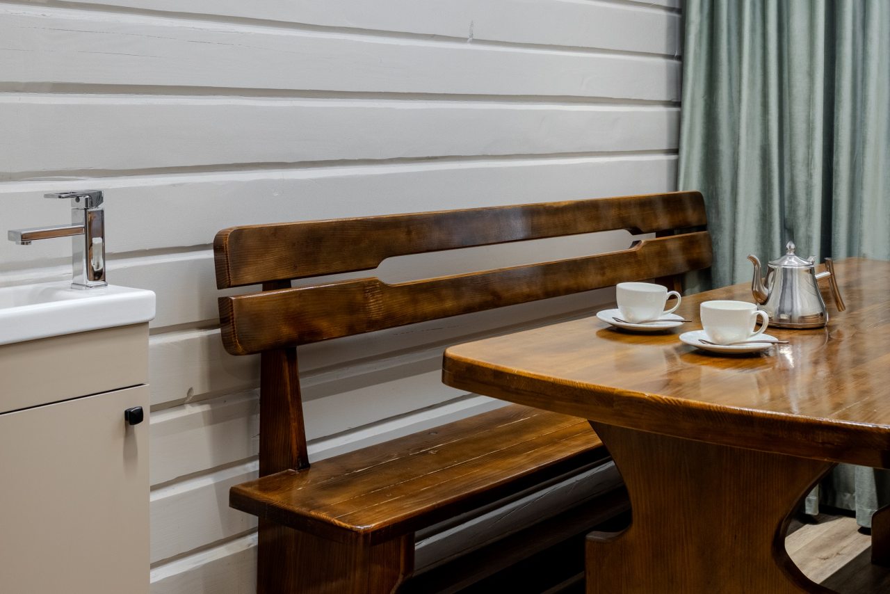 Чувствуется атмосфера старорусского уюта, и река рядом добавляет волшебства. Во дворе чисто, можно погулять или просто посидеть на лавочке с видом на воду. Хозяева доброжелательные, угостили нас вареньем из местных ягод. Баня заслуживает отдельной похвалы – приятно прогреться после прогулок. Спали отлично – тишина и удобные кровати.