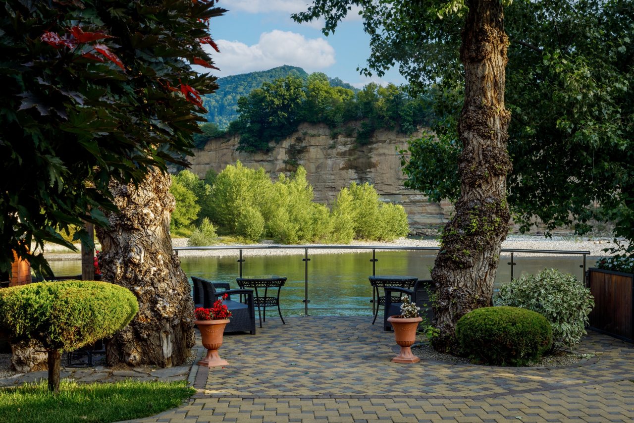 Гостевой дом расположен в хорошем месте,на берегу реки Белой. Мы жили в 1 корпусе. Номер хороший,чистый. Территория ухоженная. Вообще отдых в отеле понравился. Персонал вежливый. В кафе большой выбор блюд. Парковка для авто большая,удобная.