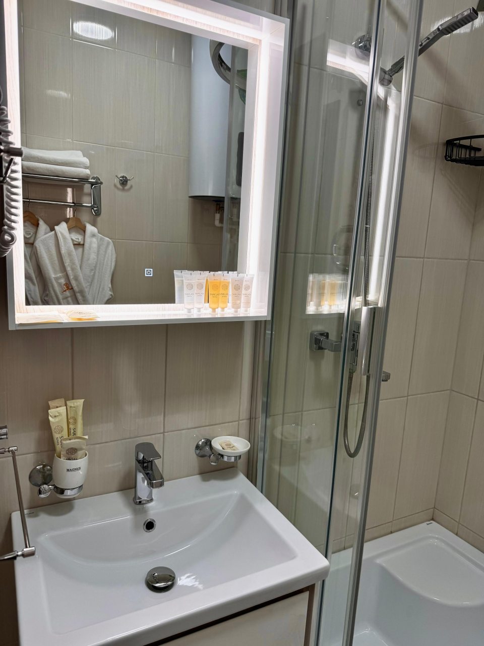 Приехали поздно,заселили быстро.Номера шикарные,чистые.все новое ,главное матрасы хорошие и подушки.Еда на завтрак просто ум отъешь,красивая подача и все вкусно.Персонал приветливый.Советую посетить отели и ресторан,красивый интерьер вас приятно удивит.