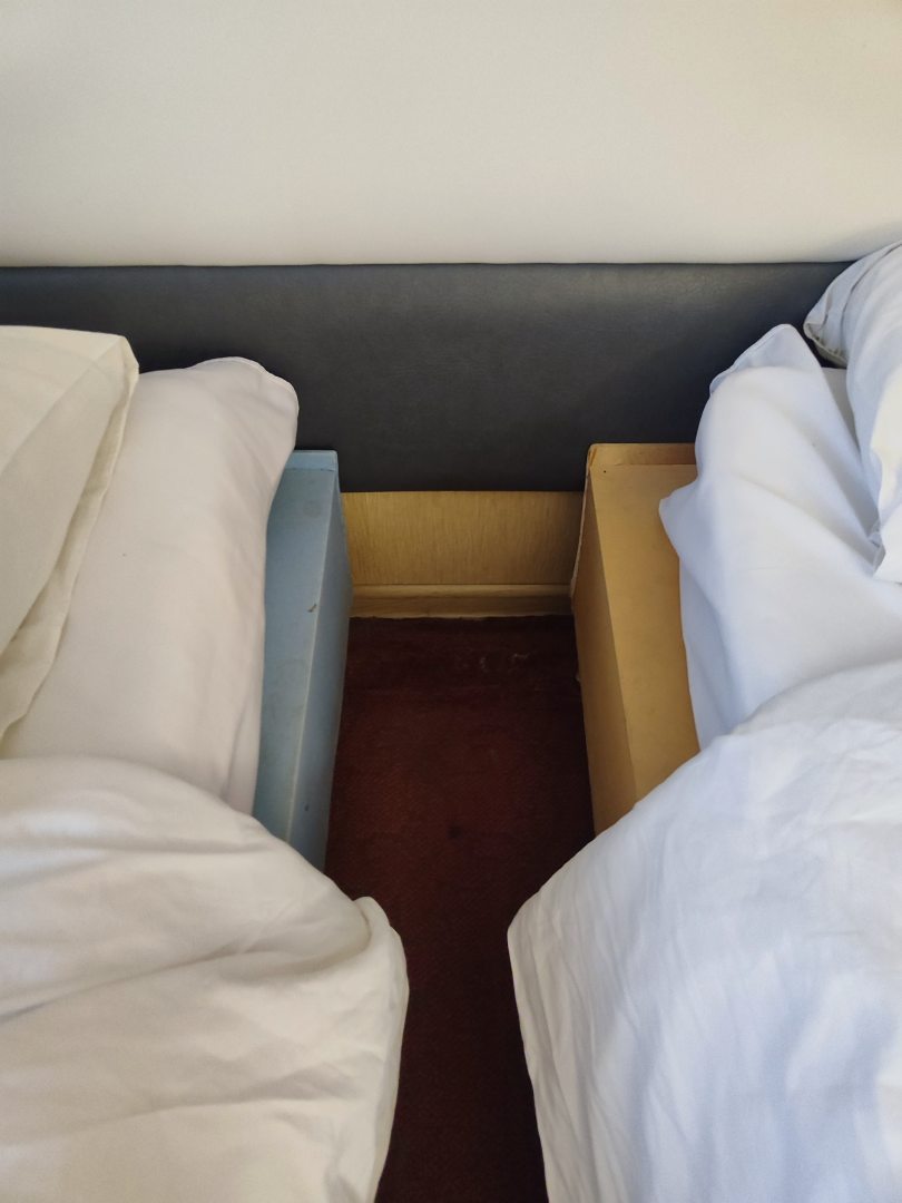 Из недостатков: в номерах конечно есть небольшие проблемы с износом мебели, но мы люди не придирчивые, нам сошло. Тем более в номере мы только спали.