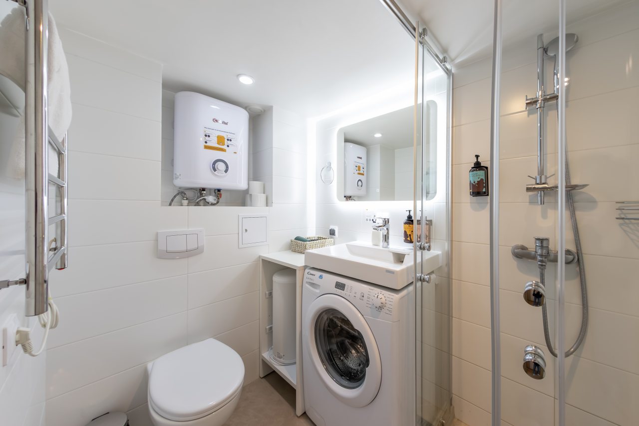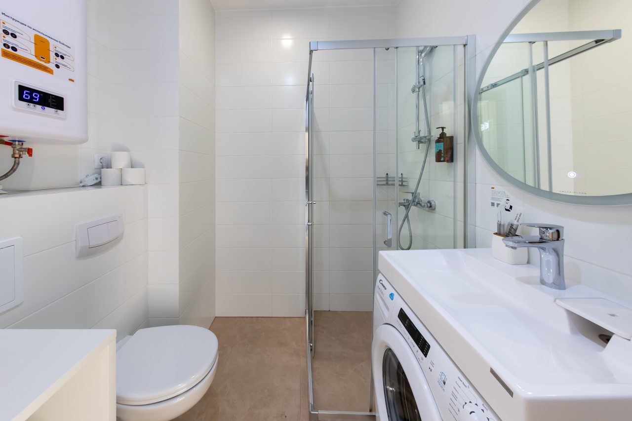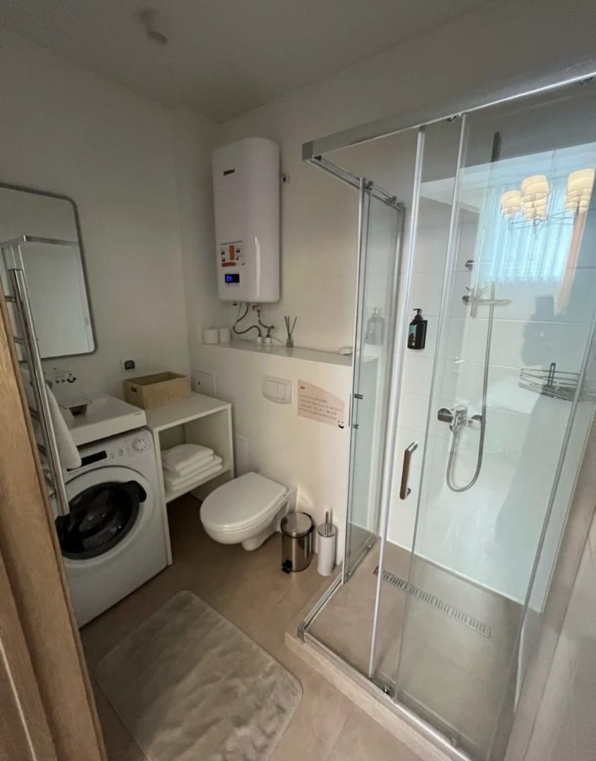Из недостатков: мне не хватило лифта, мы жили на третьем этаже, подниматься тяжеловато. Есть стиральная машина, но нет ни геля , ни порошка для стирки.