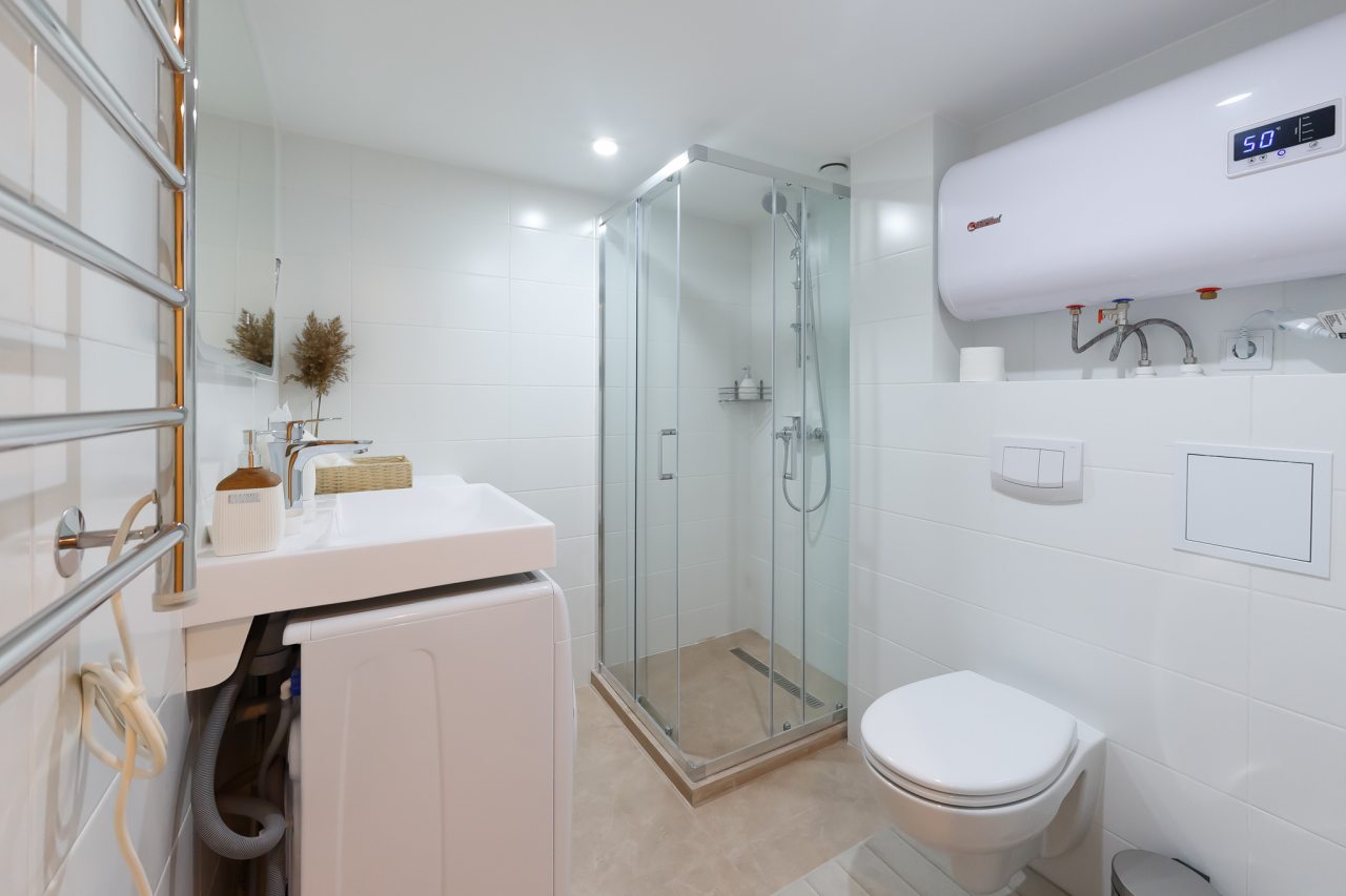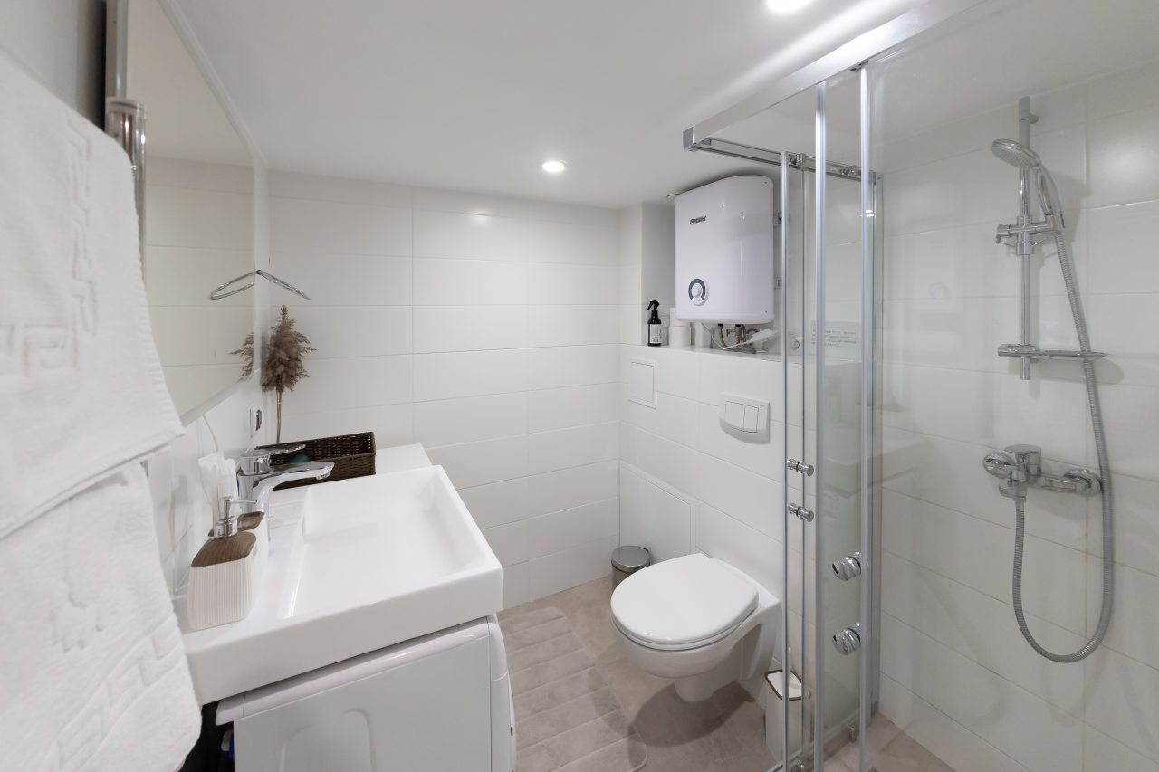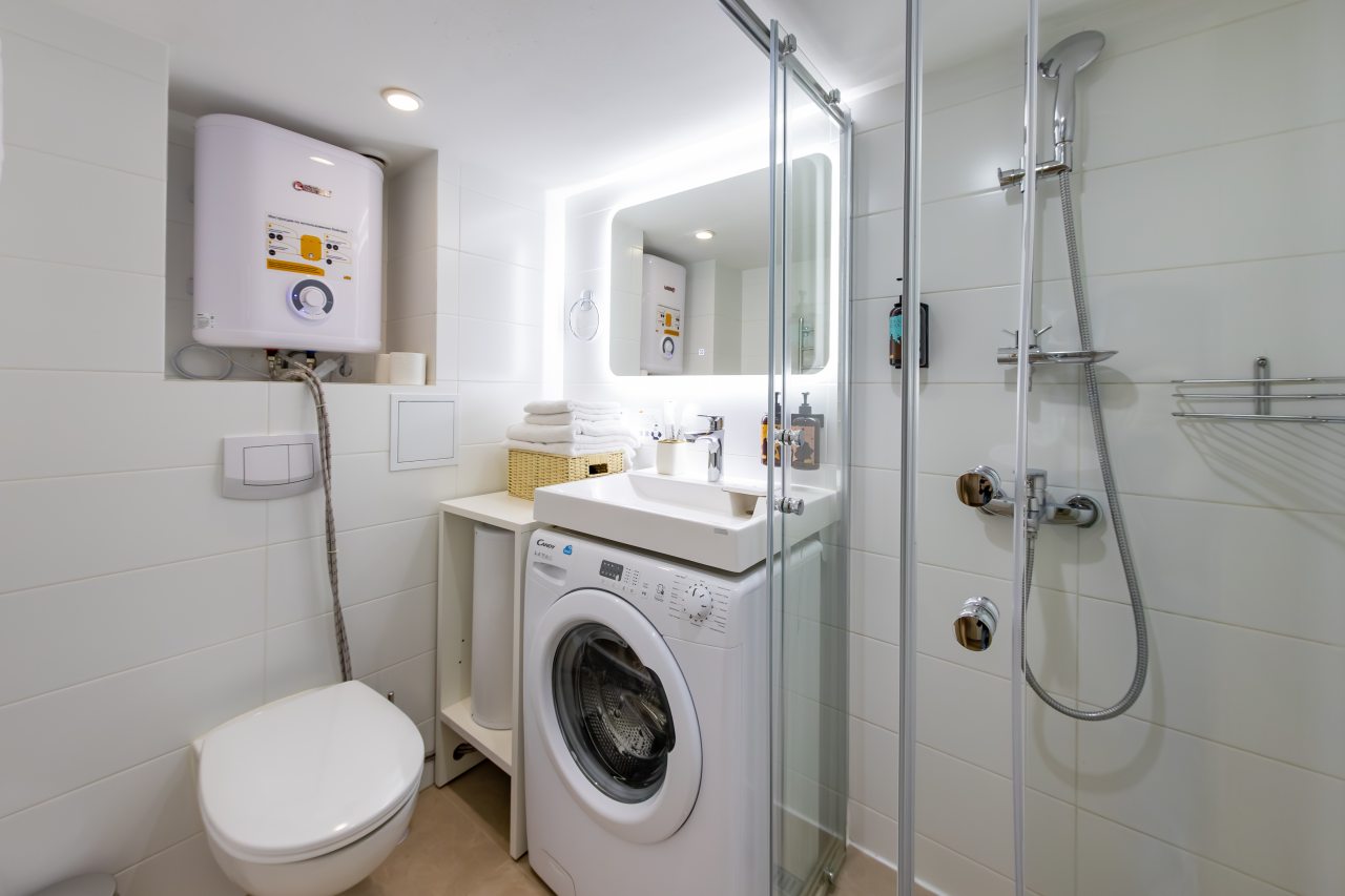 Из недостатков: мне не хватило лифта, мы жили на третьем этаже, подниматься тяжеловато. Есть стиральная машина, но нет ни геля , ни порошка для стирки.