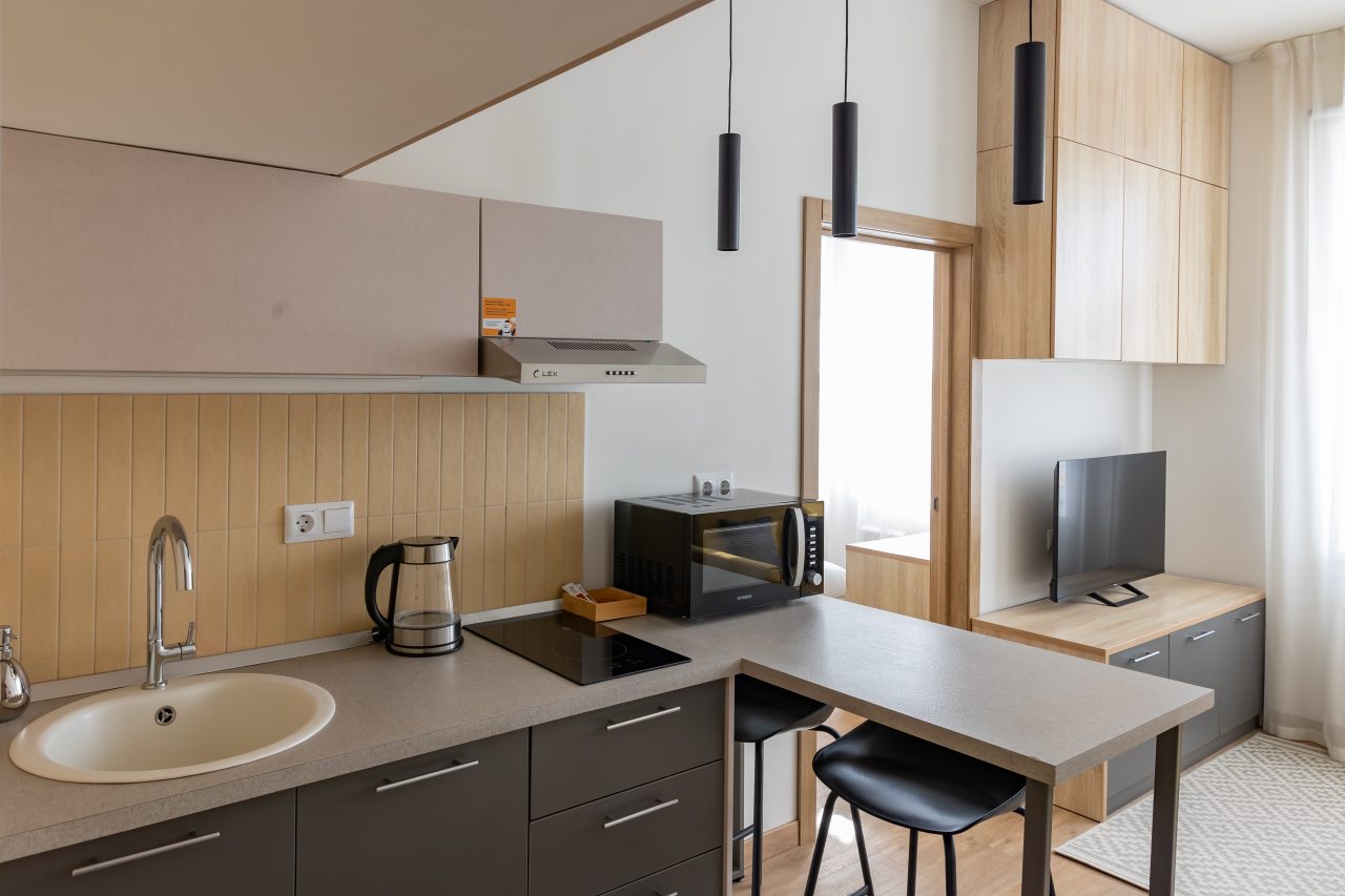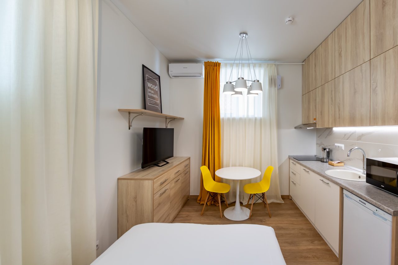 Хороший апарт отель. Чувствуешь себя здесь уединенно и спокойно, никто никому не мешает, никто никого не ждет. Нас порадовала чистота, которая царила по всюду. Была организована небольшая своя кухня, мы даже ей пользовались пару раз. Расположение нам пришло по душе, удобное. Будем рекомендовать своим знакомым данное заведение. Спасибо.