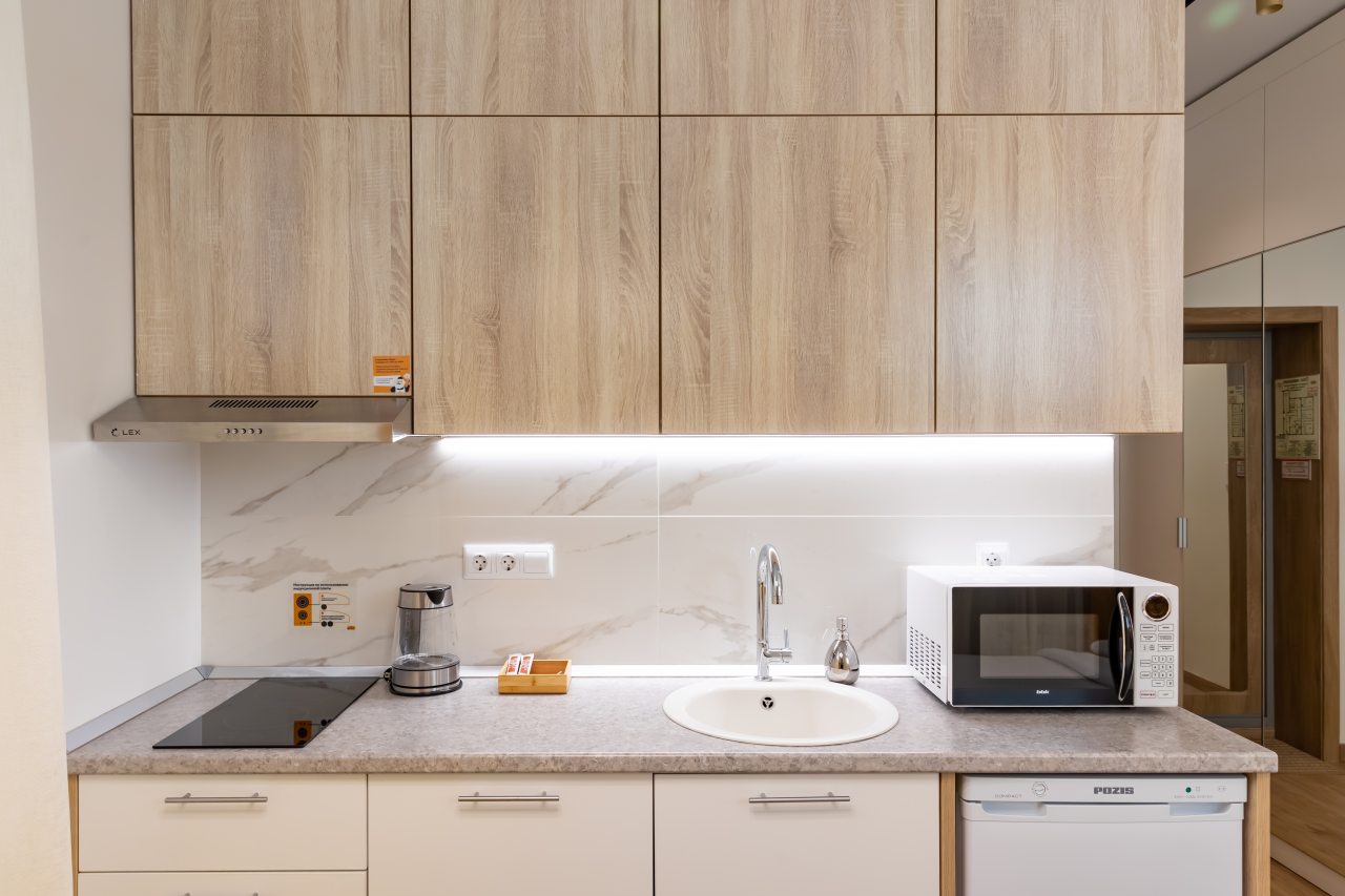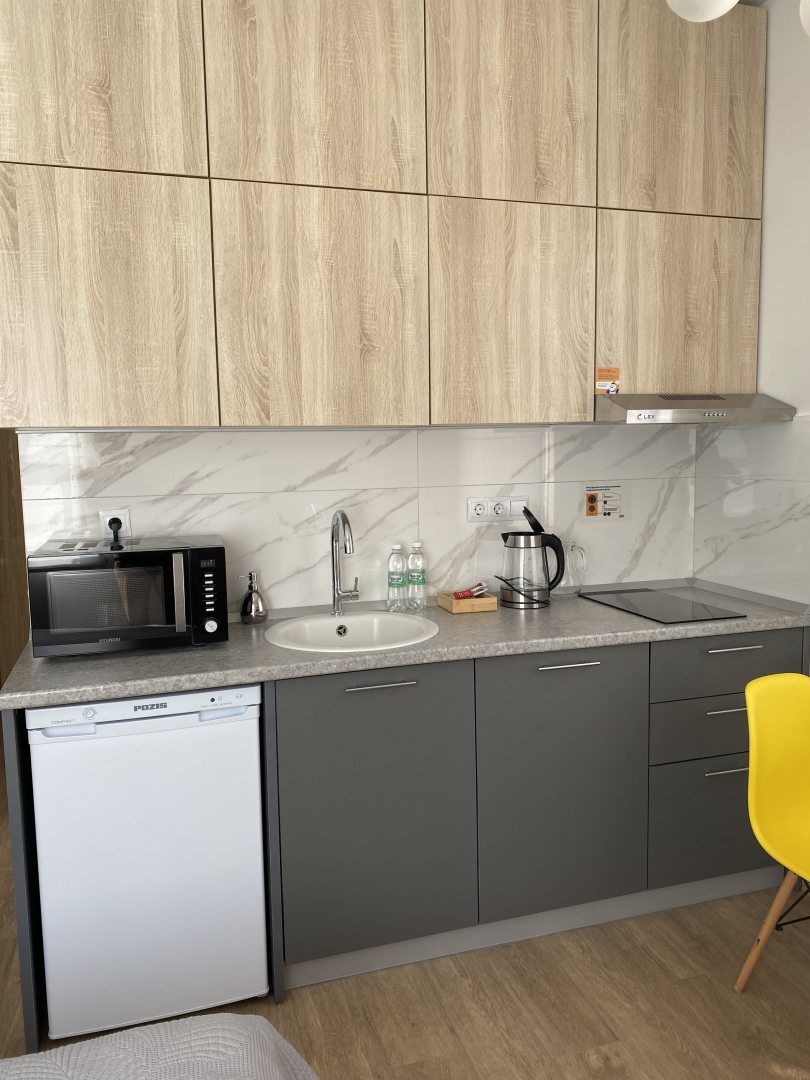 В номере холодильник, микроволновка, плита, утюг, гладильная доска. Т.е. все, что может пригодиться.