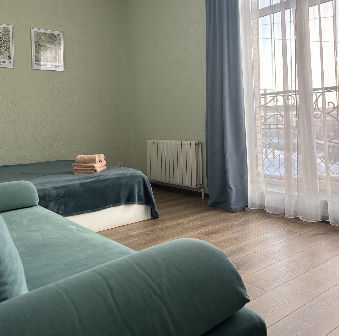 У нас уже достаточно взрослые дети, с которыми мы путешествуем. Рассчет был на то, чтобы их разместить на большой кровати, самим взять меньшую. Увы. В номере оказалась кровать кингсайз и раскладной диван в зоне прихожей. Спасибо администратору Елене, она быстро разрулила эту ситуацию. Нам предоставили раскладушку. Разместились с комфортом. Площадь номера позволяла.