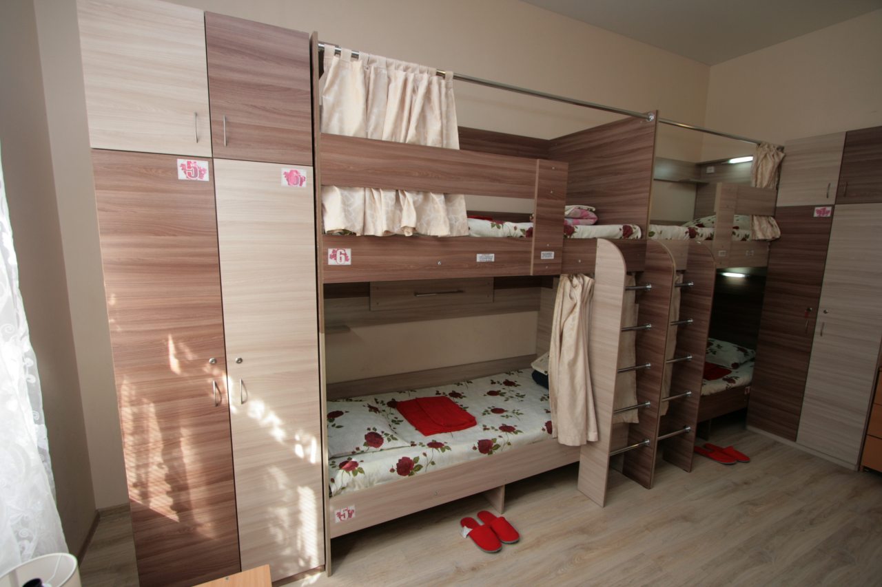 Из недостатков: матрацы ужасно неудобные, в двухуровневой кровати у обоих матрацов чувствуются пружины. Подушки очень старые, внутри скомканный наполнитель, спишь как на тряпочке.