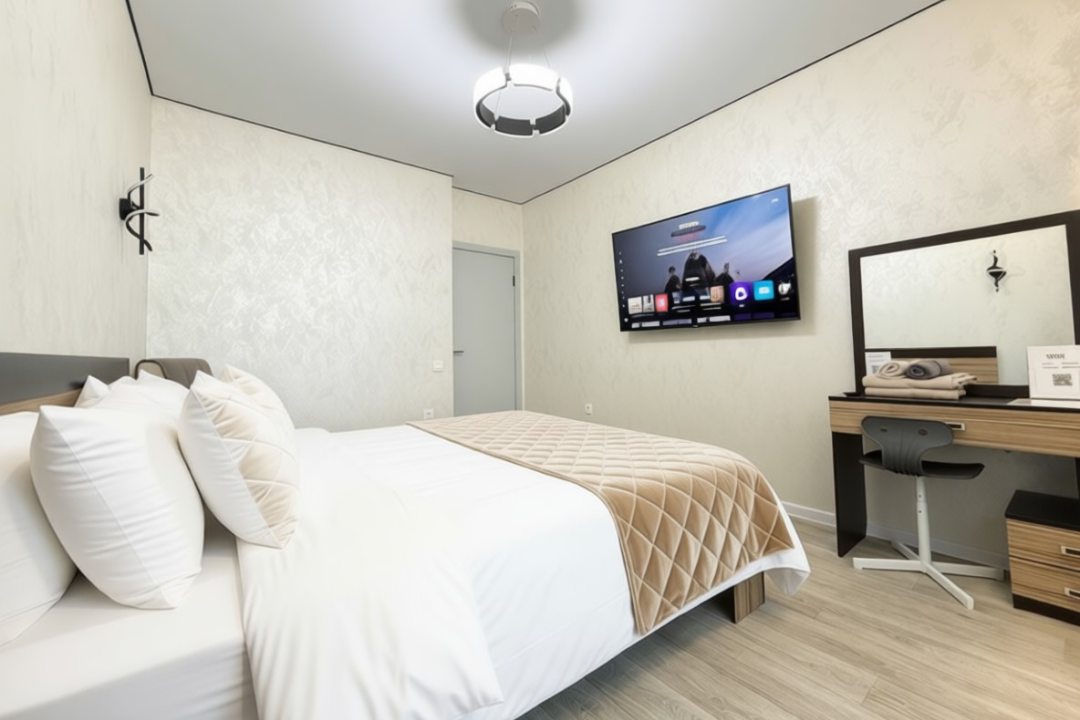 Прекрасное местоположение, в двух шагах Кремль, улица Баумана, остановки метро, автобуса, троллейбуса. Заселение-выселение максимально просто, быстро, удобно. В номере есть всё необходимое. Просто, чисто, тепло, уютно. Если случится снова ехать в Казань, то только сюда. Спасибо тем, кто о нас позаботился.