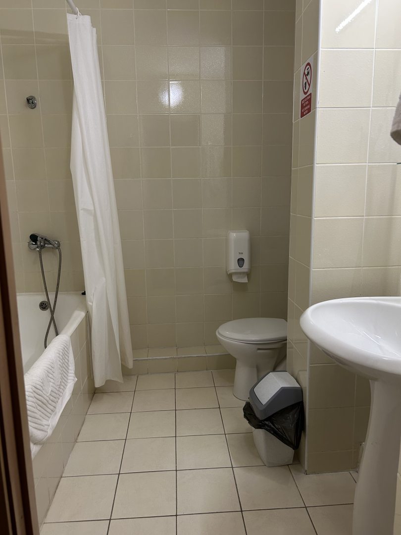 Из недостатков: большой минус это лифт, он очень маленький и расположен странно. Вход в лифт между первым и вторым этажом, надо подняться по лестнице к нему - нет пандуса. И на 9 этаж тоже не попасть на нем, только 8,5 и тоже по лестнице. Людям с проблемами ног стоит рассмотреть другой отель. Нет розеток около кровати, на другом конце комнаты только..