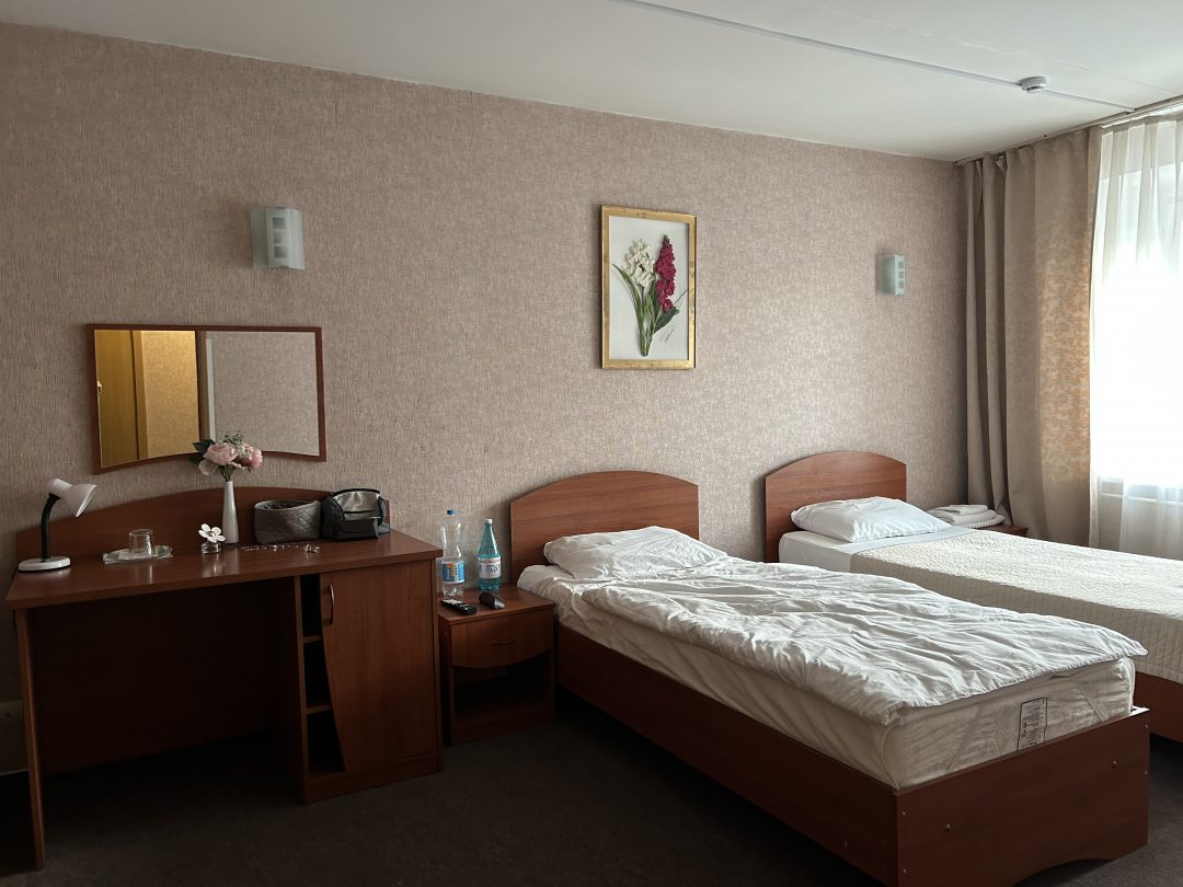 Встретили вежливо на парковке, помогли удобно разместить автомобиль, девочки на ресепшене предложили более удобный вариант размещения. Ознакомили с отелем, графиком работы кафе-ресторана. Меню очень даже понравилось, есть салаты на выбор, гарниры на выбор, всё очень вкусно , по-домашнему, респект поварам, отдельное спасибо девочкам -официантам. Ненавязчиво ухаживают за столами. Есть вкусный кофе на выбор, чай на выбор, вкусный прохладный морс. Всё свежее. В номере всё чисто, халаты, постельное бельё белоснежные . Приятный аромат в номере. Вся техника работает. Есть кондиционер в номере. Мебель вся уютная, целая. Обстановка располагающая к полноценному отдыху после дальней дороги. В ванной всё чисто, одноразовые туалетные принадлежностями, тапочки одноразовые упакованы, аккуратно всё разложено в доступности. Вода есть и тёплая, и холодная. Унитаз, биде, всё чистое. Присутствует в ванной комнате приятный аромат. В номере есть презентабельная посуда, штопор, открывалка для напитков, ножи, вилки, тарелки, стаканы большие и маленькие. Все удобства для проживания. Есть дополнительный плед для сна. Выдержано в успокаивающей тональности. Окна открываются, всё чистенько. Есть лифт, подниматься на свой этаж было удобно. Проживали на 5 этаже. Девочки на ресепшене готовы ответить на интересующие нас вопросы. Всё приветливо, с приятной улыбкой. Помогли вызвать такси. Всё очень понравилось, выспались. Спасибо, рекомендую. Будем рекомендовать своим друзьям и знакомым. Ещё раз спасибо большое.