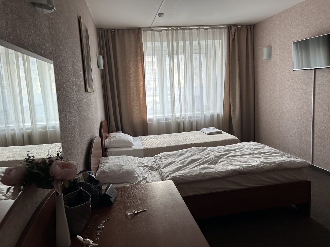 Включён завтрак и он оказался очень даже, есть выбор и вкусно. Очень дружелюбный персонал. В городе вообще очень хорошие люди местные - добрые, позитивные. В номере холодильник, телевизор, фен, душ, туалет. Через дорогу очень вкусная столовая (домашняя столовая ( ул. Достоевского, 534). В целом ценакачество подойдёт для проживания, но только если нет проблем с ногами.