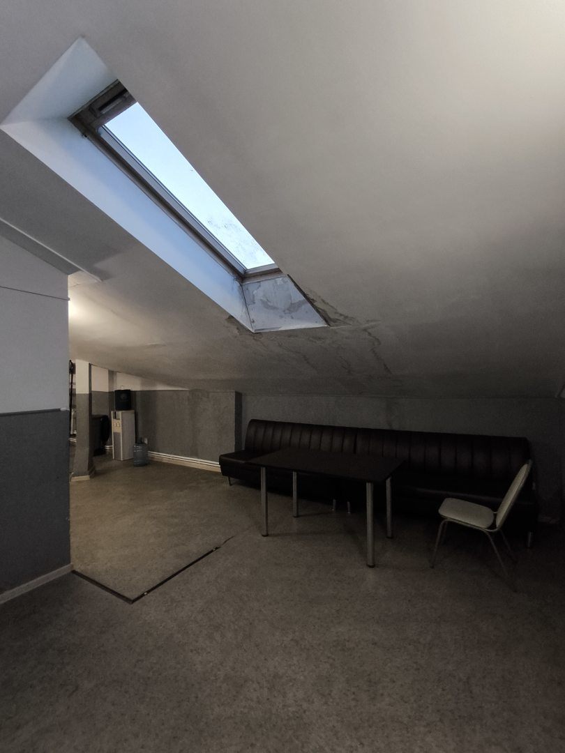У нас был номер мансардного типа под крышей пятого этажа. Чисто, прибрано, спокойно, в номере есть чайник и телевизор, в общем холле - кулер.
