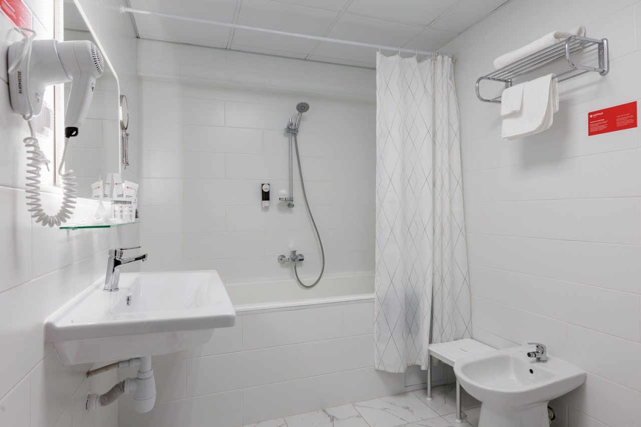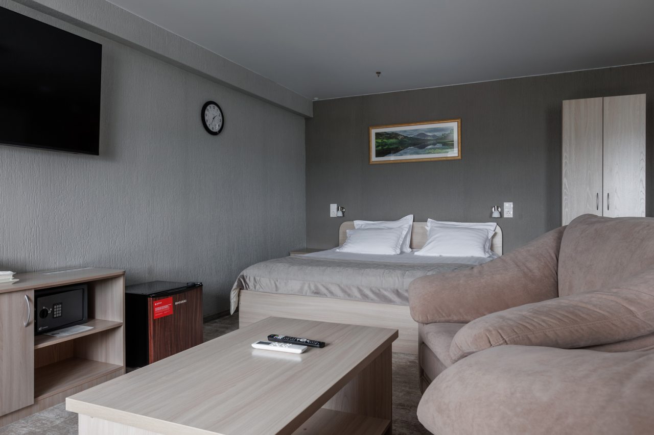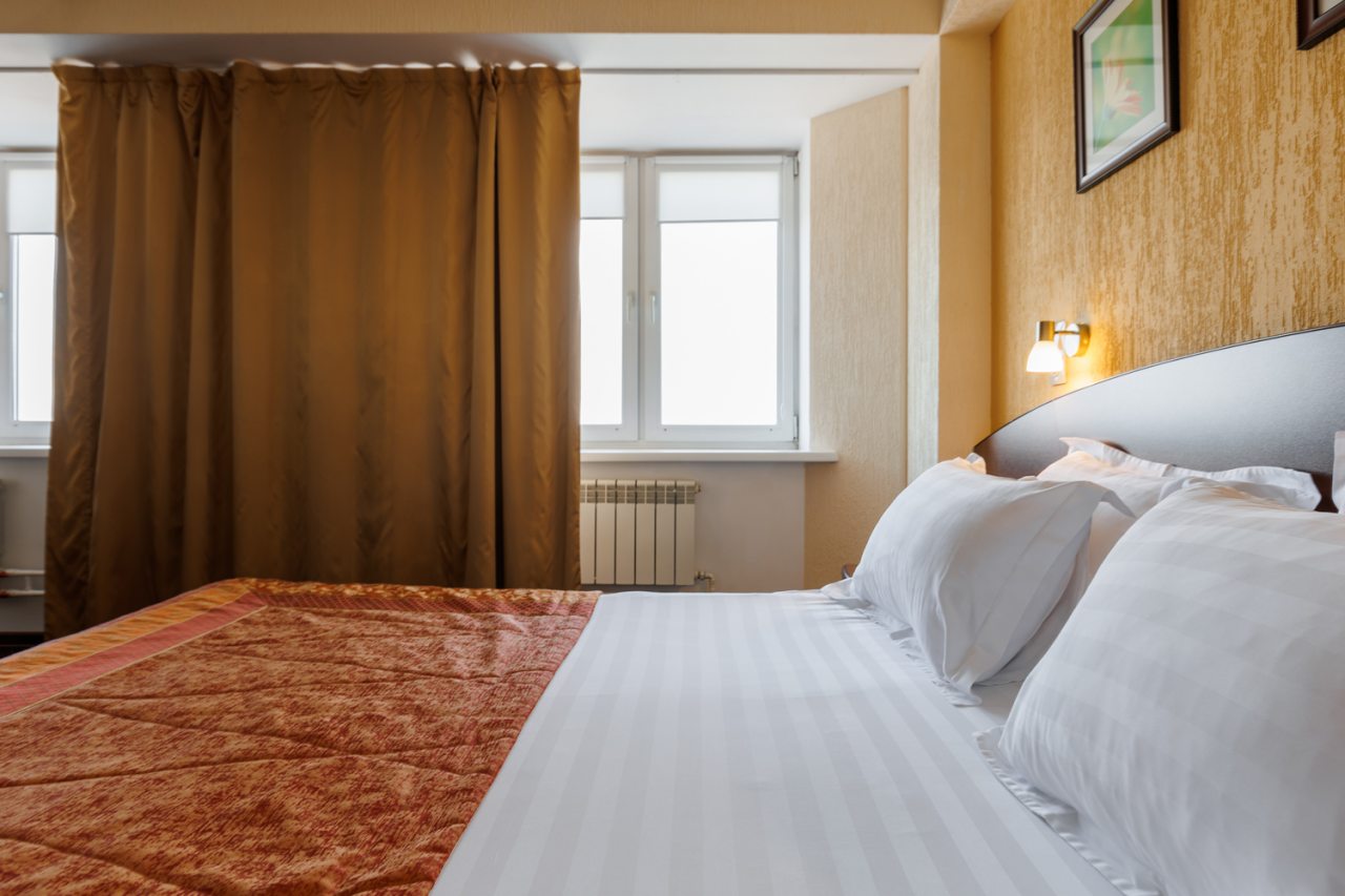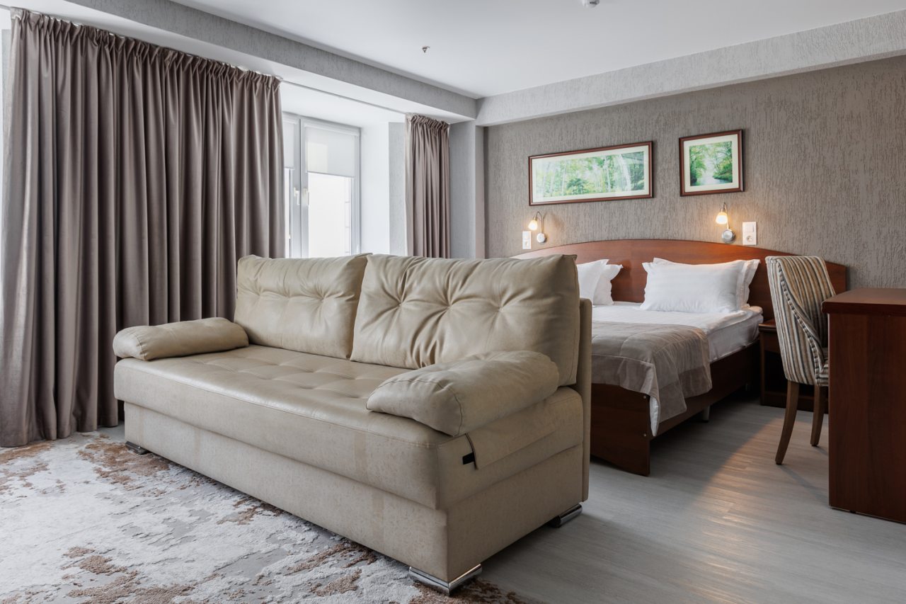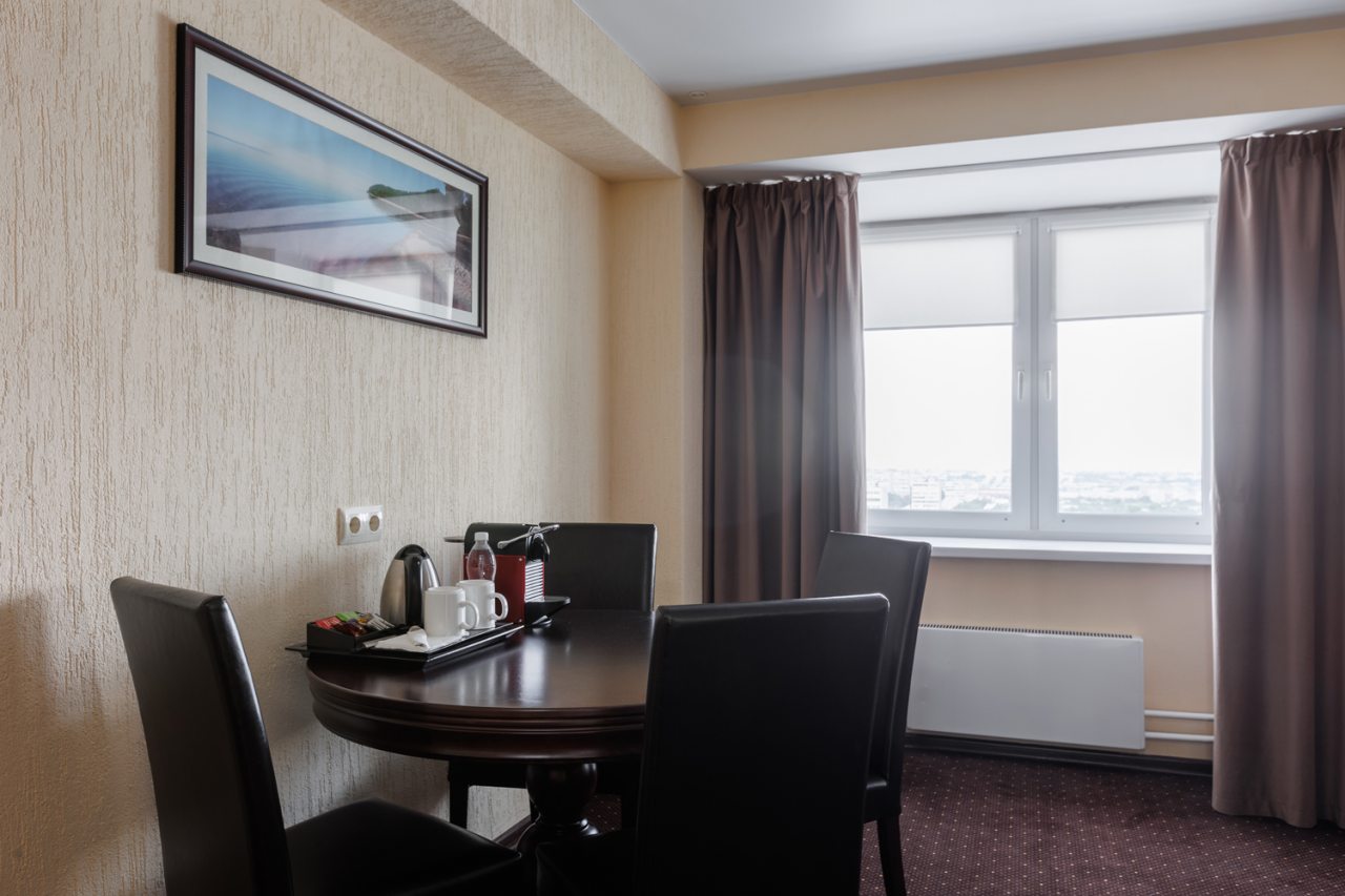 Гостиница большая, в ней предлагается много номеров и отличный сервис. На 4 звезды все соответствует, как и обещано. Мы располагались в двухместном комфорте с одной большой кроватью. В нем хороший современный ремонт, ковровое покрытие было чистым. На окнах плотные шторы, тщательно закрывающие от дневного света. Есть стол большой и зеркало, телевизор. В душе сантехника современная плюс есть бойлер, благодаря которому горячая вода была постоянна в номере.