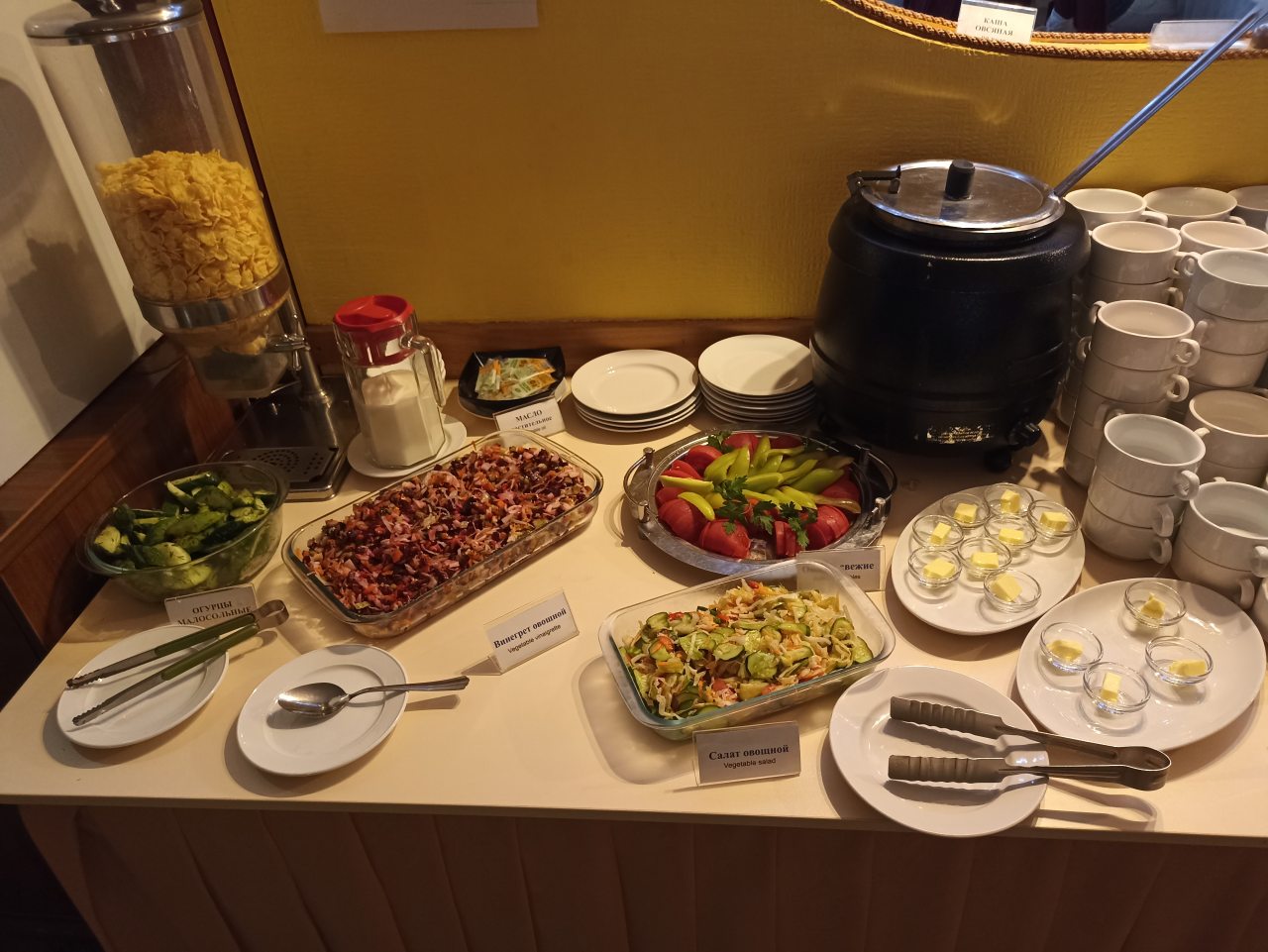 Ещё  были приятно удивлены,тем что в номере помимо холодильника,чайника и чашек,были столовые приборы и тарелки для второго, очень удобно,для любителей поужинать в номере.