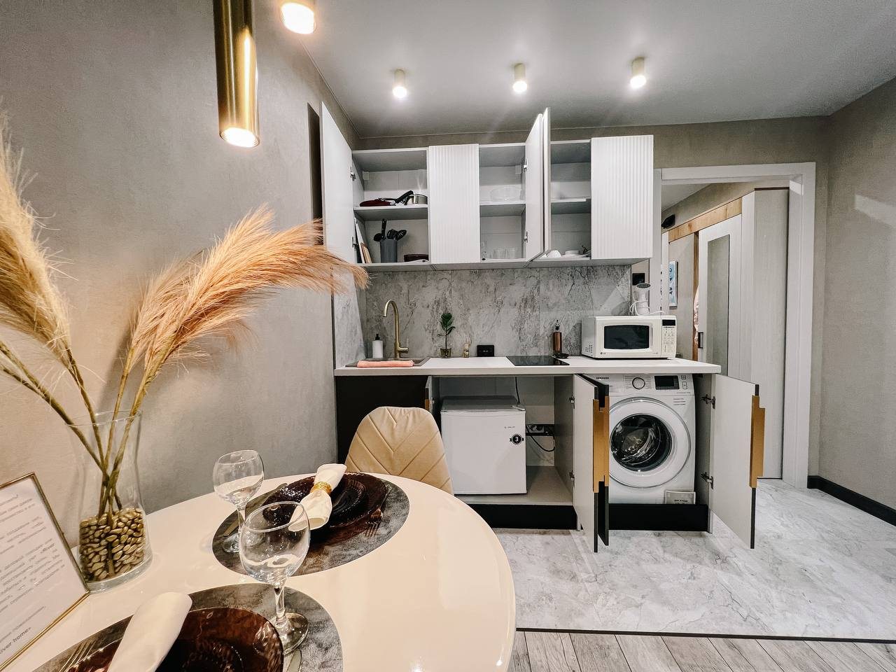 Из недостатков: не понравилась уставшая микроволновка ( не работала), отсутствовали кастрюли, чтобы элементарно отварить яиц, непригодные к использованию сковороды.