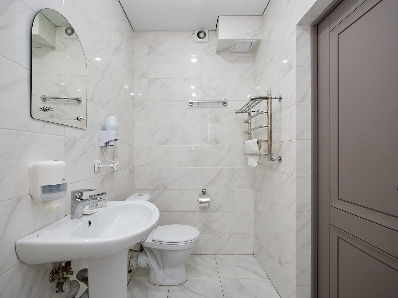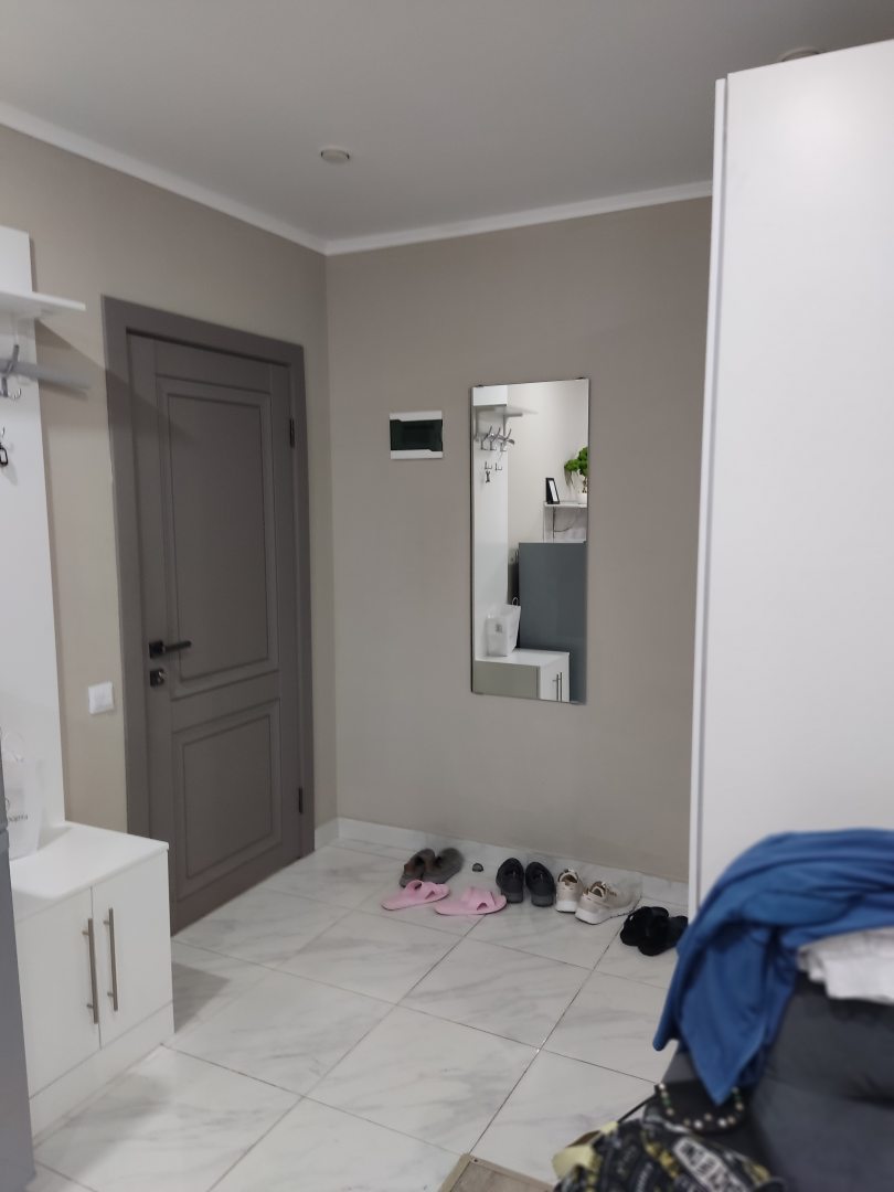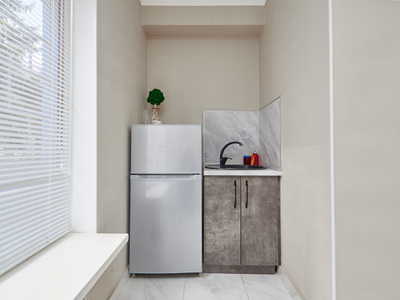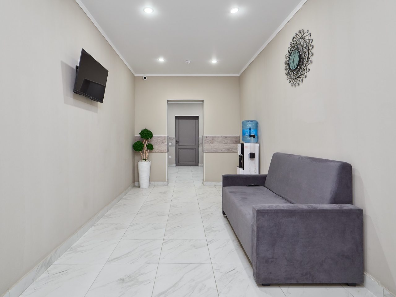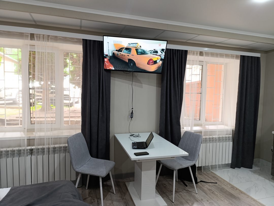 Современный стильный интерьер, чисто, есть всё необходимое. Кондиционер, тв, большая кровать, диван, кухня в номере, ванная комната. Расположение в тихом районе, шторы блэкаут, спать ничего не мешает.