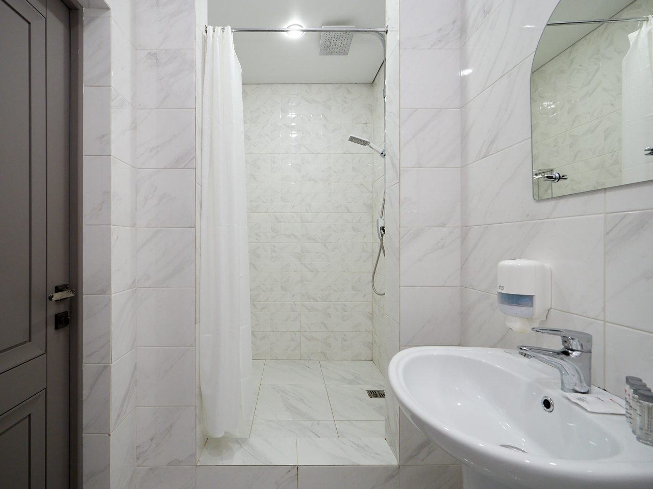 От номера остались только положительные впечатления. Заселились семьёй с двумя детьми 9-12 лет. Жили 5 дней. В кухне все есть. Готовили сами. Магазин в минуте хотьбы. Если надо погладить или постирать в общем коридоре все есть. В душе пространство огромное. Спасибо за гостеприимство)