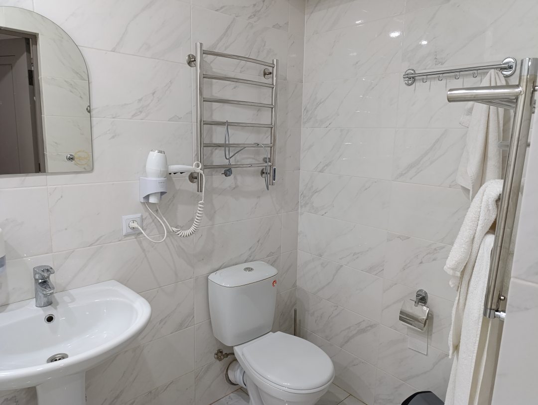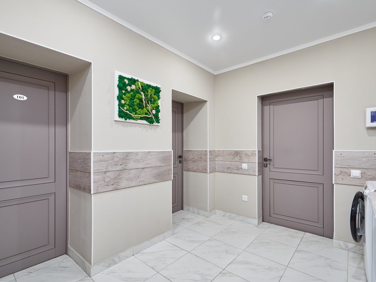 Прекрасный отель. Подойдёт как для семейного отдыха так и для деловой поездки. Рядом несколько магазинов. Есть небольшая парковка. Номер на первом этаже. В коридоре есть стиральная машинка и гладильная доска. В номере хорошая шумоизоляция, соседей не было слышно. Номер большой и уютный, огромная удобная кровать и раскладывающийся диван. Есть кухня со всем необходимым. Кондиционер справлялся с жарой. В поддержке отвечали оперативно. Заселение происходит бесконтактно. Нам всё понравилось. Рекомендую для проживания.