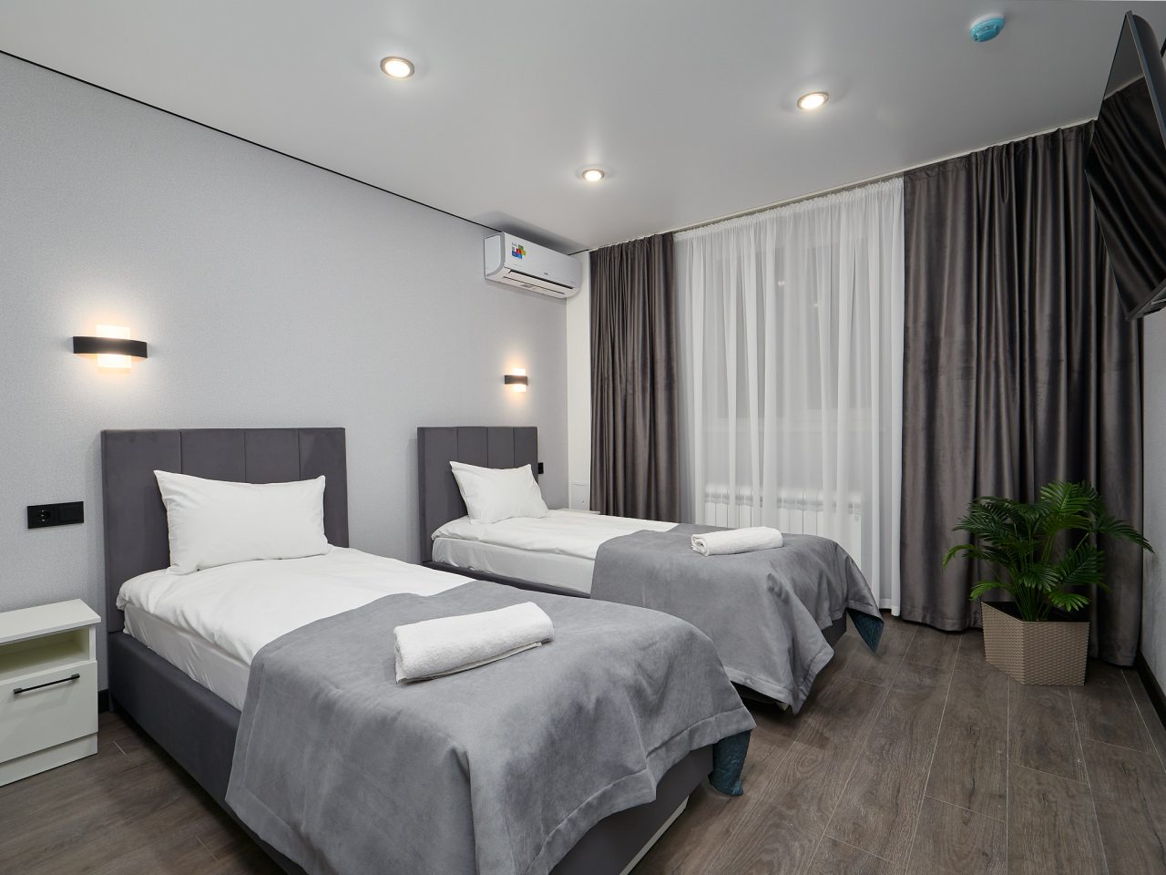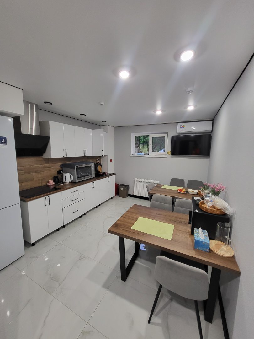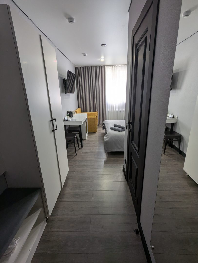 Современные комфортные номера, удобные кровати, очень приятный отель, есть полноценная удобная общая кухня. Расположение - кому что нужно, не центр, но мы были проездом в сторону Бермамыта, нам было удобно.