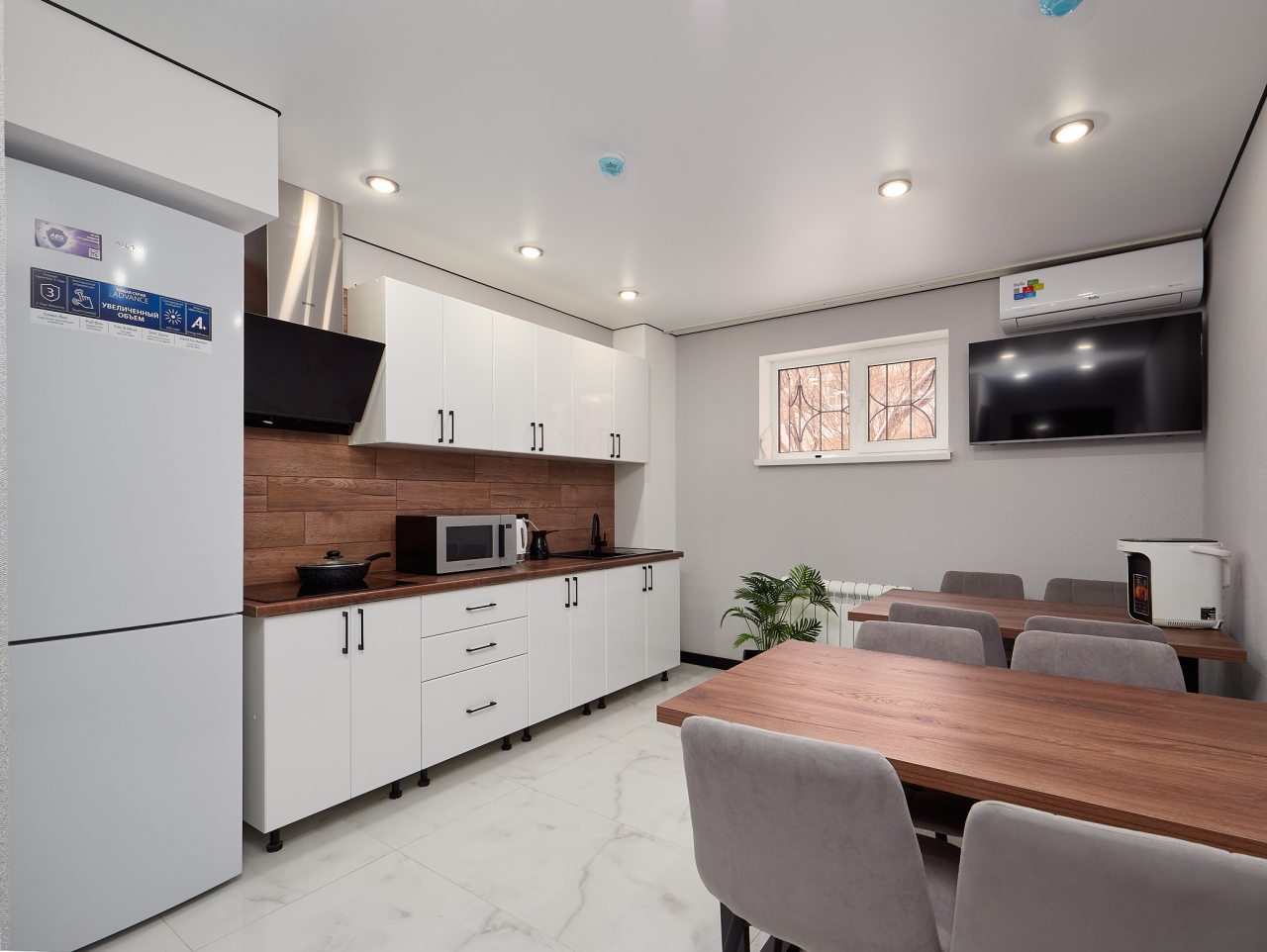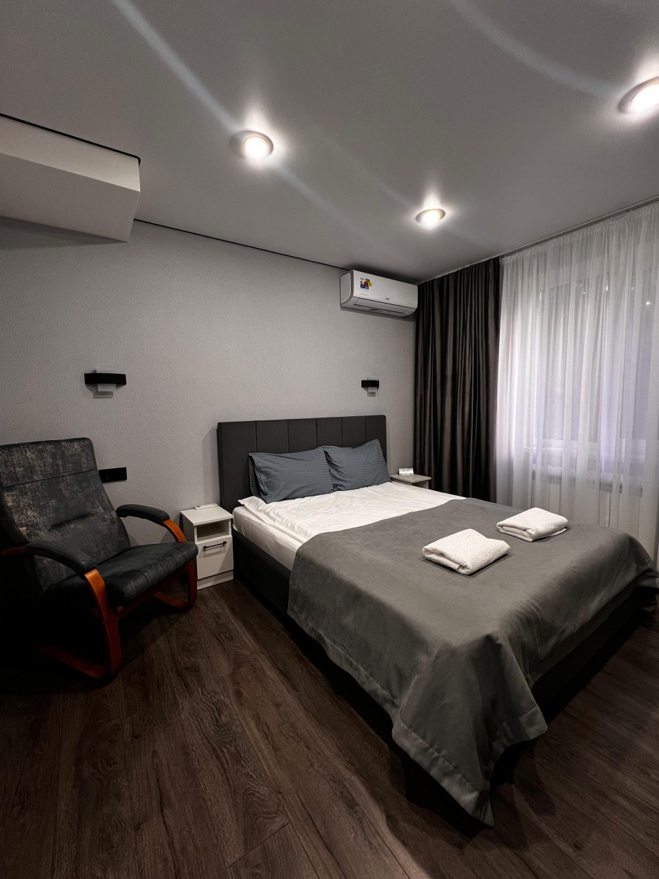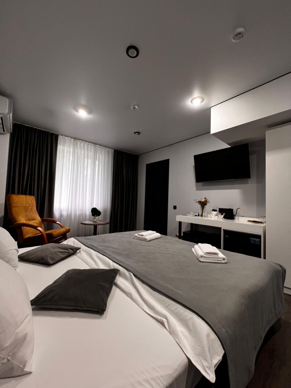 Современные комфортные номера, удобные кровати, очень приятный отель, есть полноценная удобная общая кухня. Расположение - кому что нужно, не центр, но мы были проездом в сторону Бермамыта, нам было удобно.