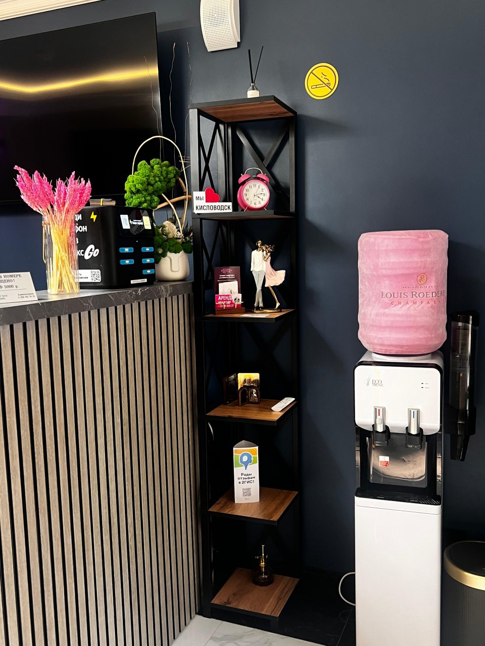 Удачное место расположения отеля, всё в пешей доступности, номер отличный, новая сантехника, горячая вода круглосуточно, всё,что нужно для душа выдают, а также чайные пакетики. Холодильник со стеклянной дверцей, небольшой , но очень удобный, встроен под письменный стол, большой телевизор на стене,прихожая со шкафом, тумбочки. Всё,что надо для отдыха и командировки, в номере есть. Есть новая обустроенная кухня-столовая на этаже. Номеров немного. Тихо и спокойно, никто не мешает и не шумит. Удобное место подъезда к центральному входу. Все экскурсионные авто свободно подъезжали и забирали меня. Санаторий Кирова через дорогу, при желании можно заказать курс процедур. 5 дней отдыхала, очень понравилось. Если будет возможность с удовольствием здесь буду останавливаться на отдых.
