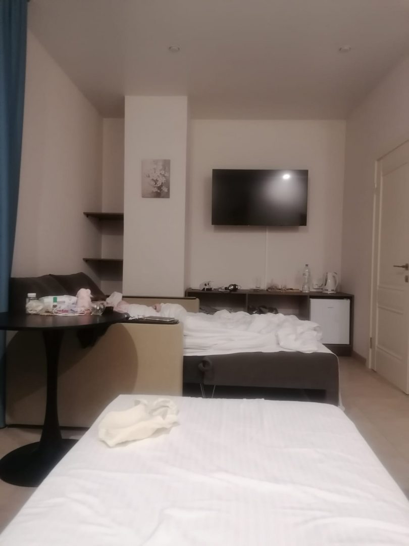 Все чисто и уютно. На ресепшене нас встретил молодой человек, потом он же помог донести вещи до номера. Проверил все ли есть в наличие. Не хватало одного набора полотенец, но это тут же исправили. Уборка мусора каждый день и несколько раз даже мыли пол. В ванной чисто, вода идёт без перебоев, туалетная бумага всегда в наличии и даже гель для душа, шампунь и одноразовые зубные щетки были в номере. Не нужно думать о том, что какая-то мелочь закончится. Был также фен)