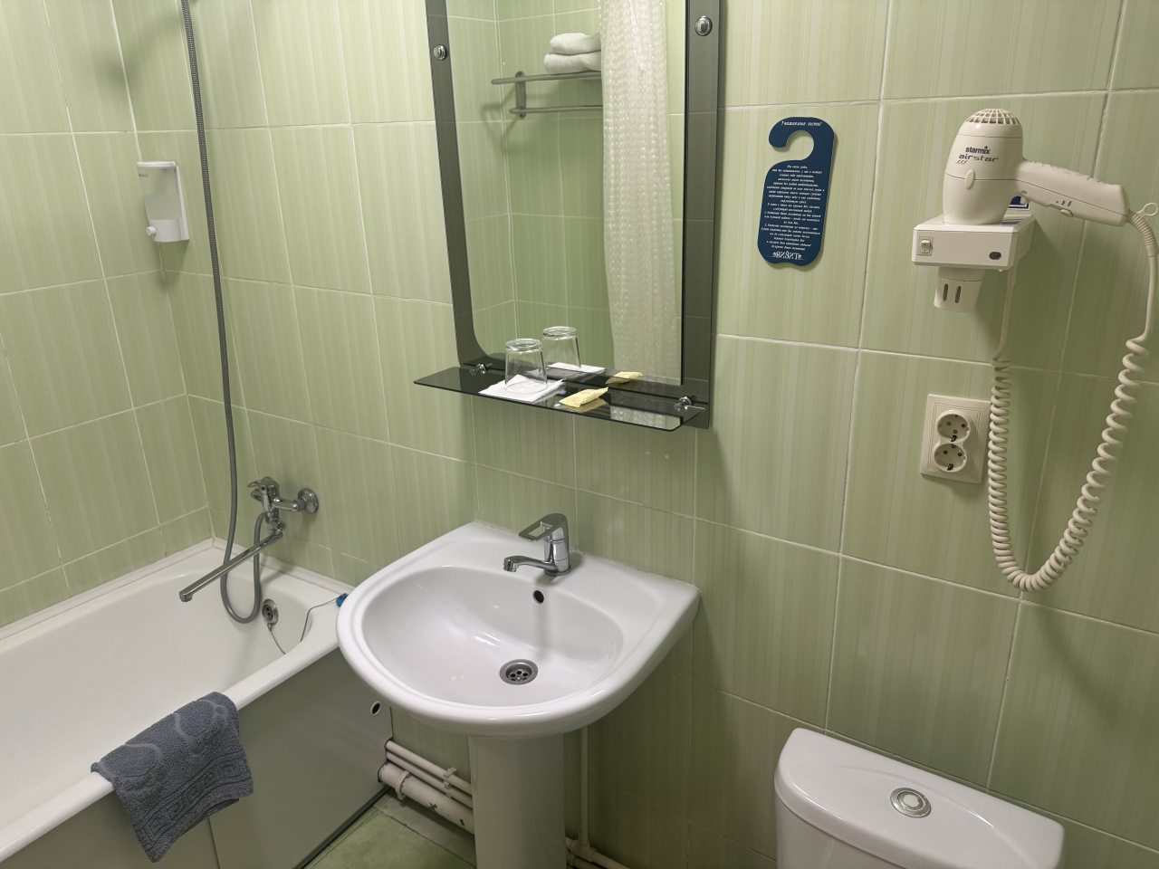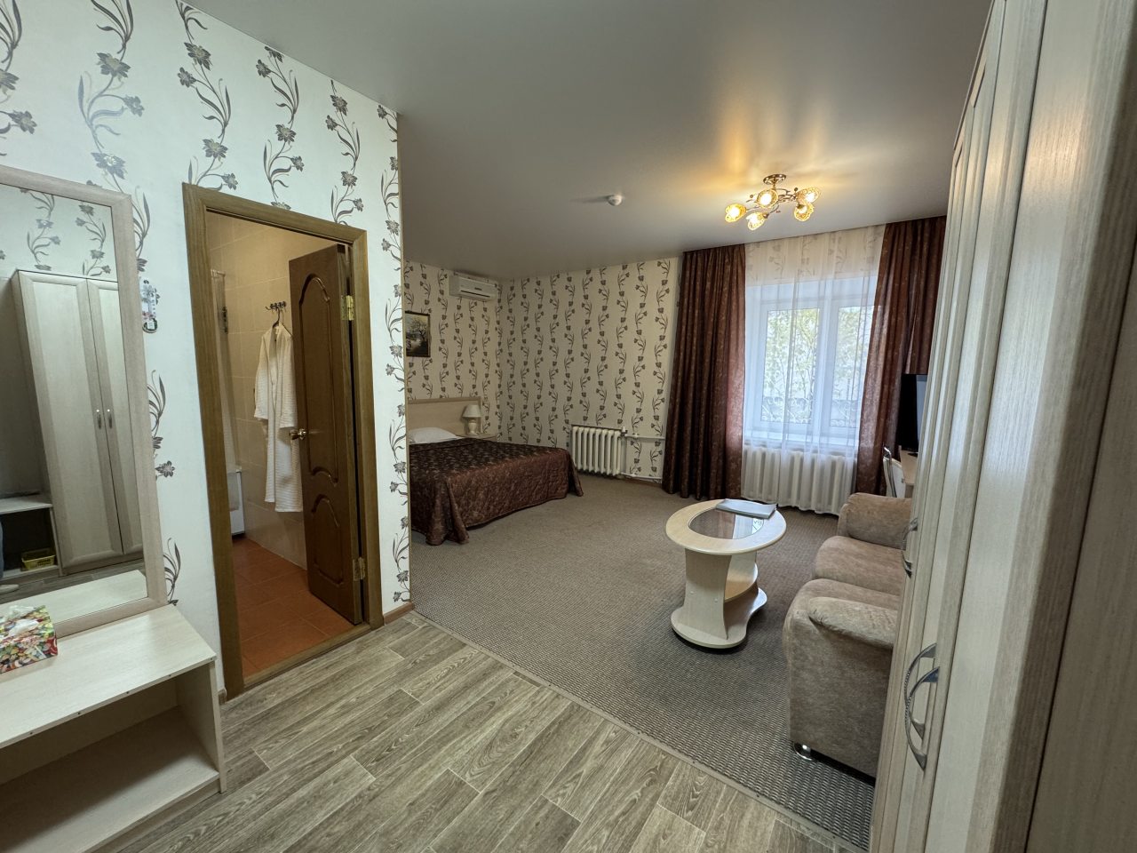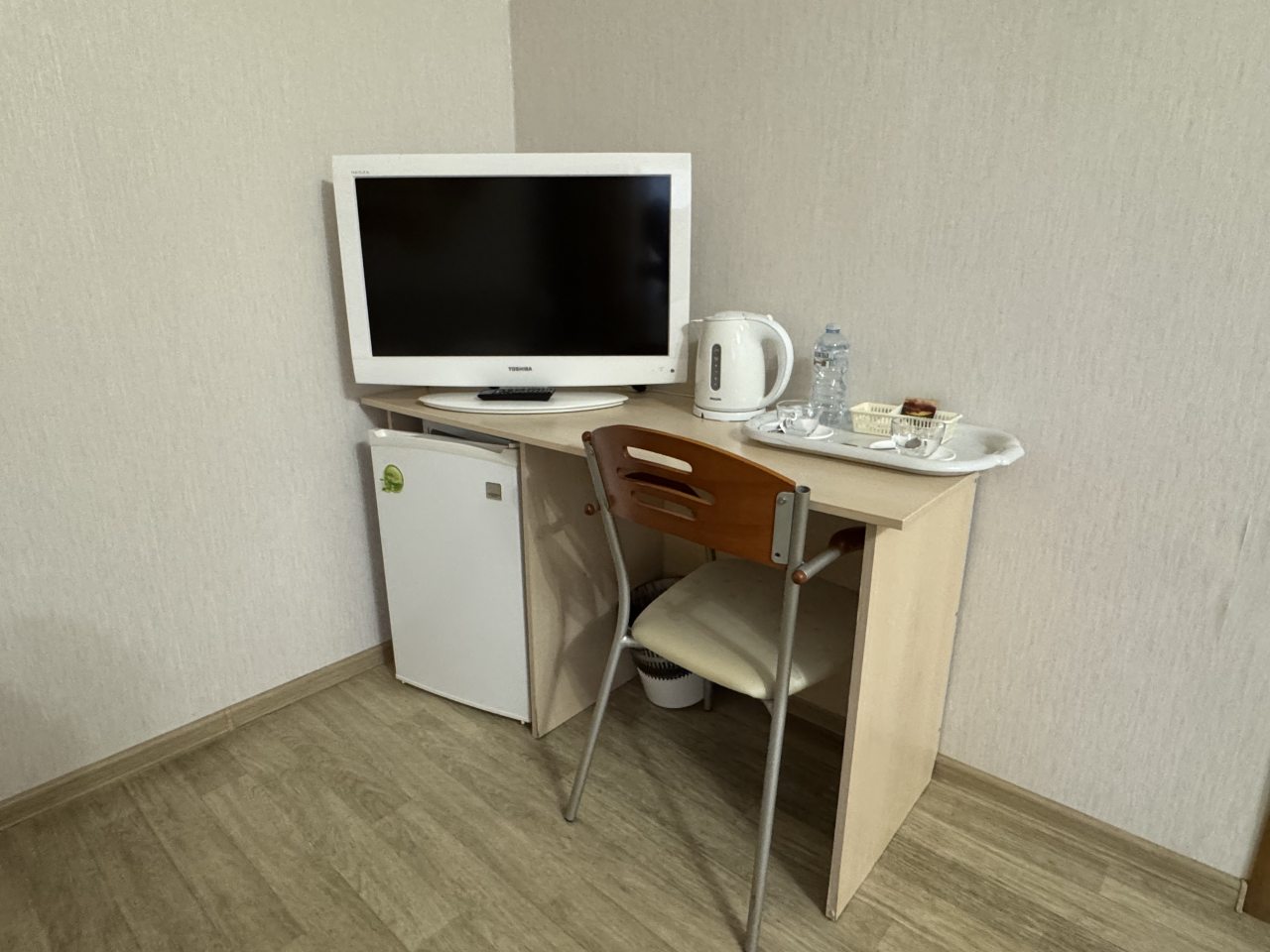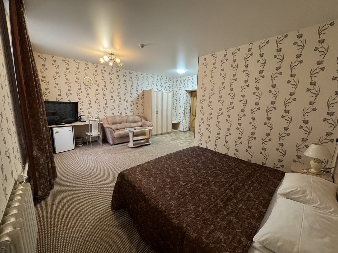 Удивлен был наличию такой гостиницы в небольшом городке. По факту получил 2-х комнатную квартиру. Кондиционер, телевизоры , чистое белье , все присутствовало. Персонал добродушный , отзывчивый, дважды поделились зарядкой на телефон))