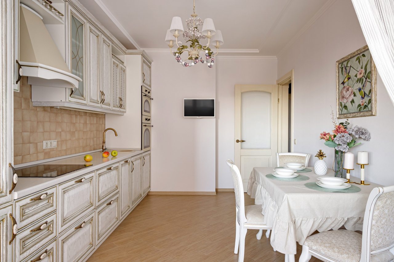Роскошные апартаменты в Краснодаре идеальны для шикарного отдыха! Здесь огромные окна, с которых поступает достаточно света. Площадь большая, есть даже второй уровень, где и расположены шикарные спальные места. Много резной мебели, она идеально сочетается с дорогим текстилем, декором. И при этом квартира невероятно практичная, техники много, все работает.