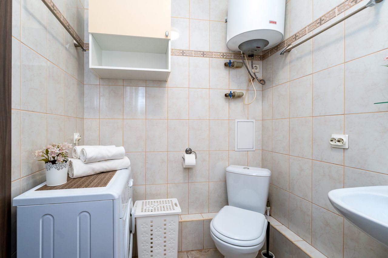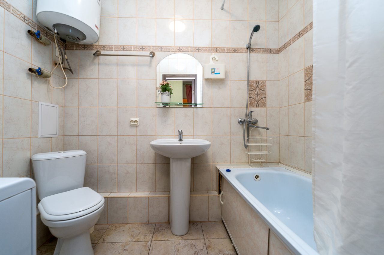 Апартаменты находятся в оживленном районе и в них достаточно просторно. Ремонт больше косметический. Мебель тоже собрана из разных гарнитуров. Цена аренды достаточно скромная, поэтому все погрешности можно и простить. Кухня есть, ванная комната тоже. Но наличие на плитке налета огорчило. Зато рядом есть много магазинов, аптек, интересных достопримечательностей.