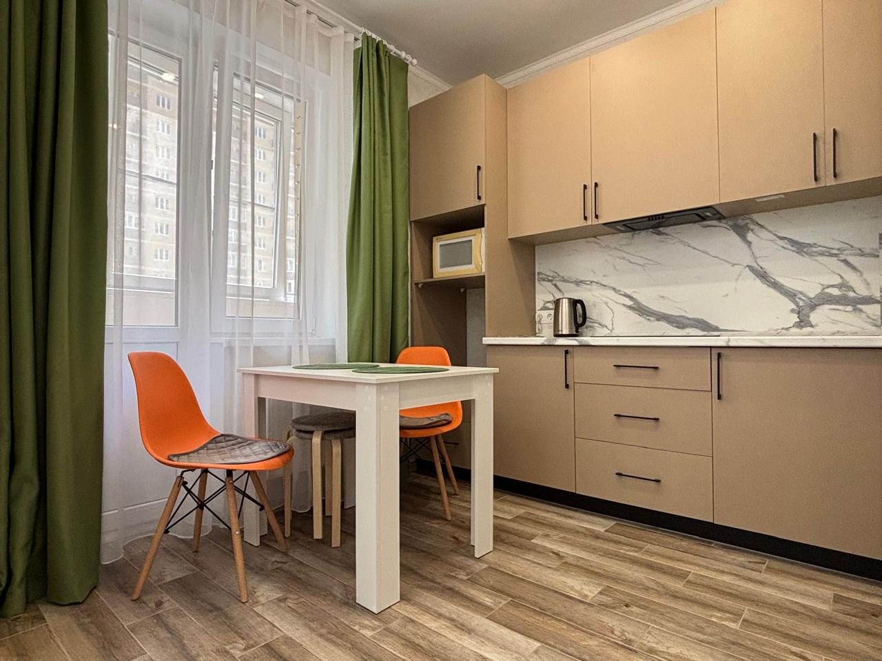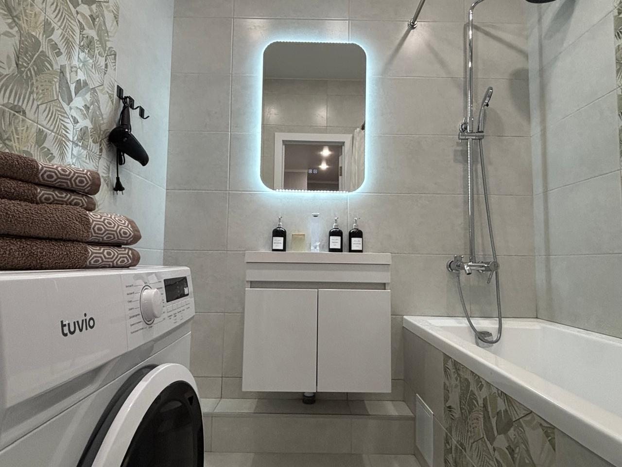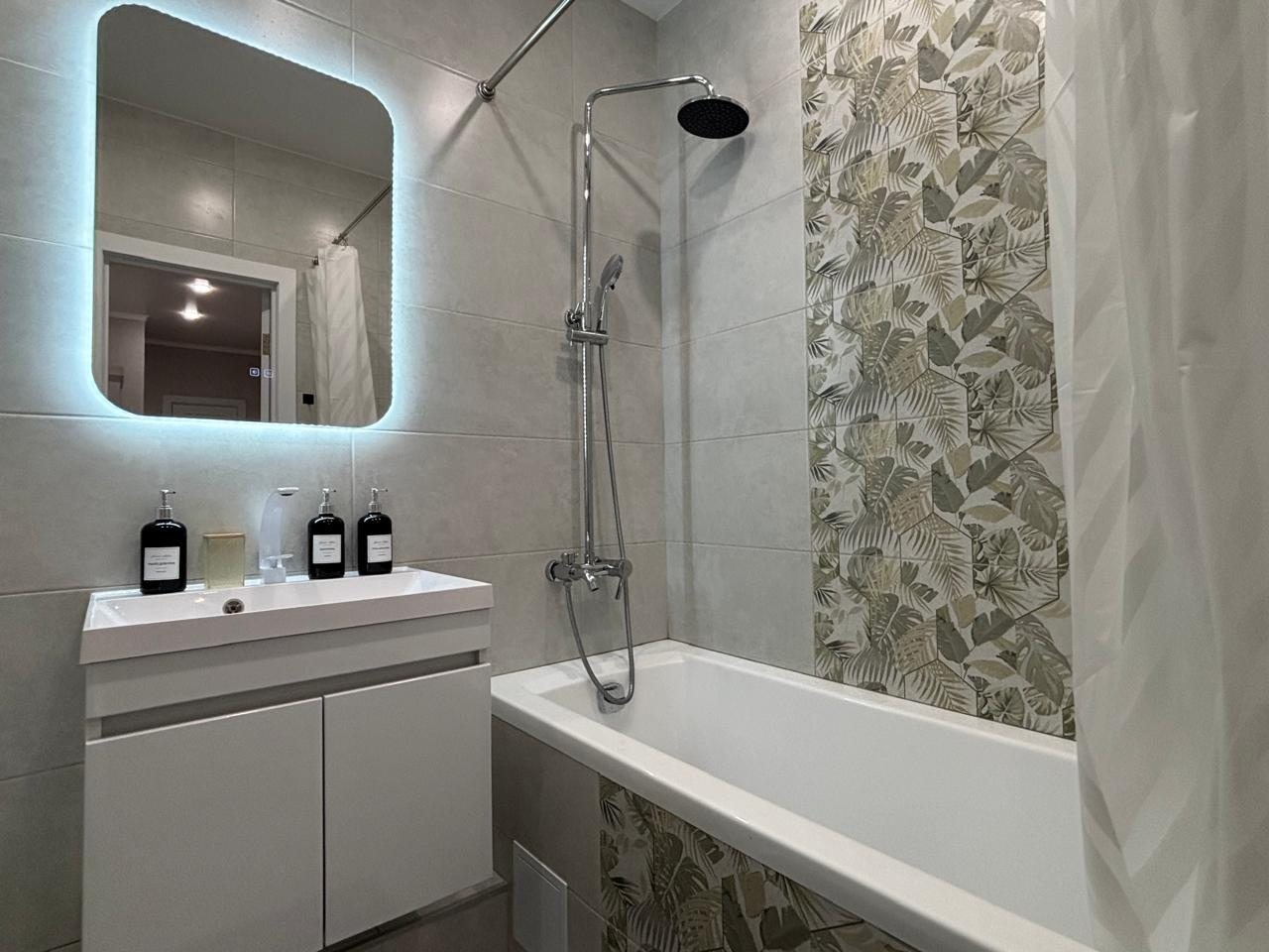 В этой квартире меня все устроило. Чисто, симпатично, удобная мебель. Кухня хорошо обустроена, в ванной комнате чистота. Хоть я в городе был первый раз, расположение мне показалось удобным - рядом ТЦ, остановки, магазины. Оценил наличие утюга и отпаривателя, такое не всегда удается встретить в отелях и апартаментах.