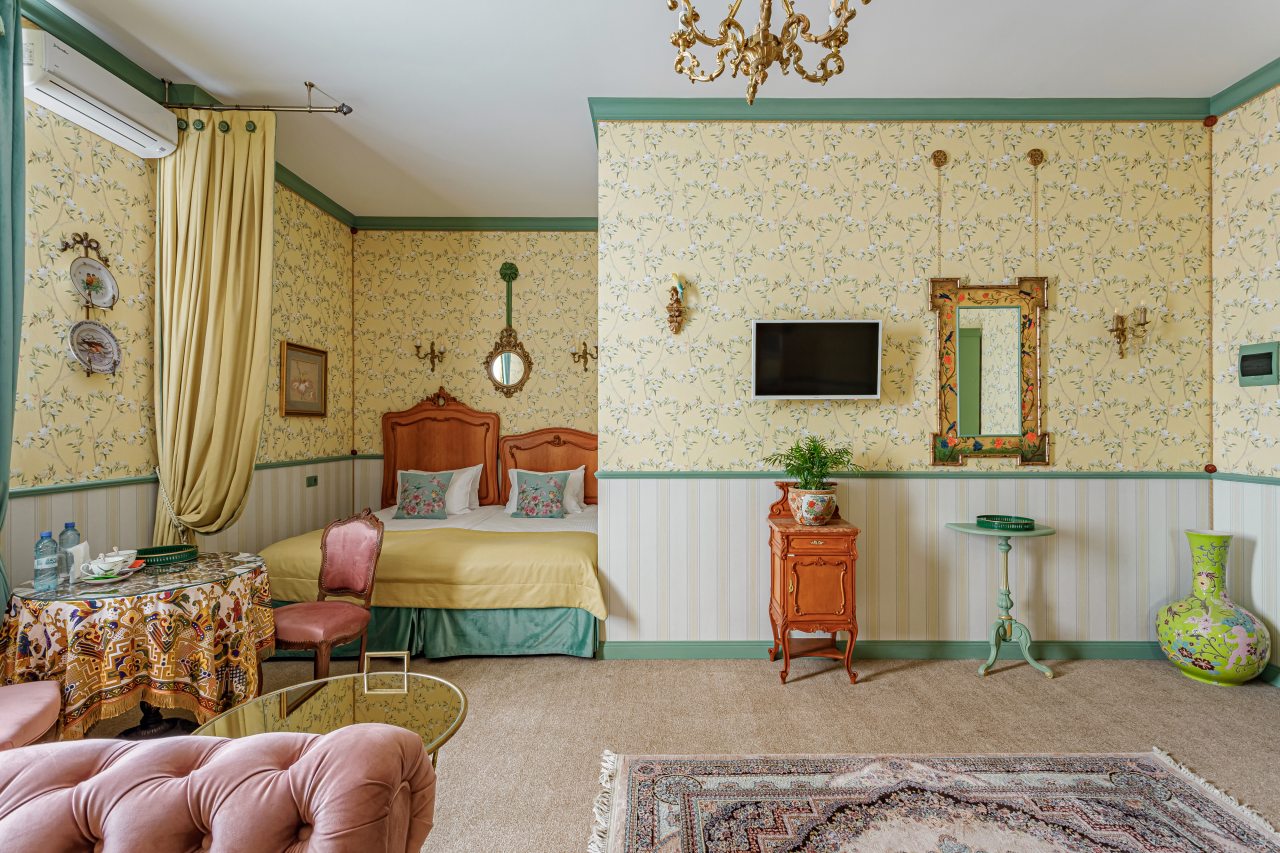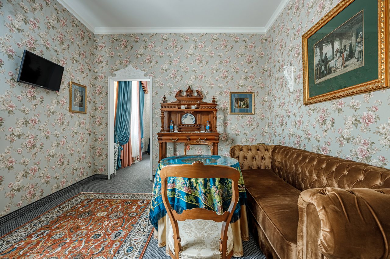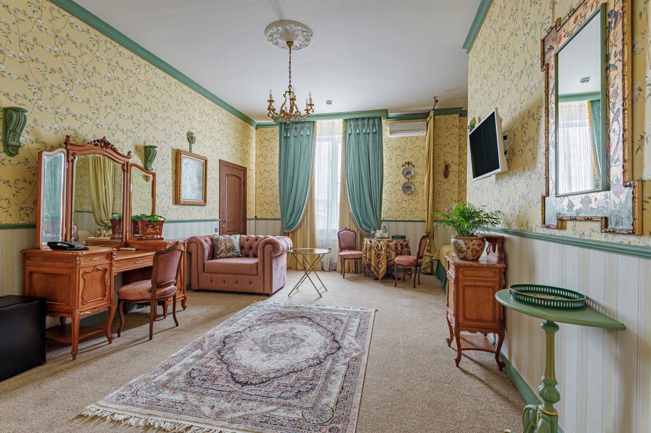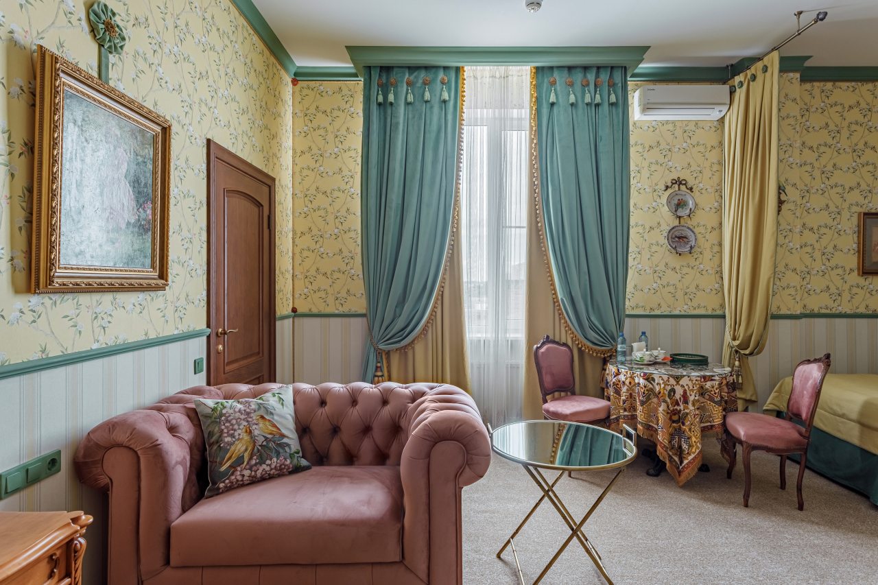 Здание само по себе смотрится стильно и внушает доверие. Интерьер выполнен с акцентом на красоту и удобство. Атмосфера позволяет почувствовать себя особенным гостем. Чистота на высоком уровне, каждая деталь выглядит ухоженной. Приятно возвращаться после прогулки в такой номер. Уют и стиль здесь сочетаются органично.