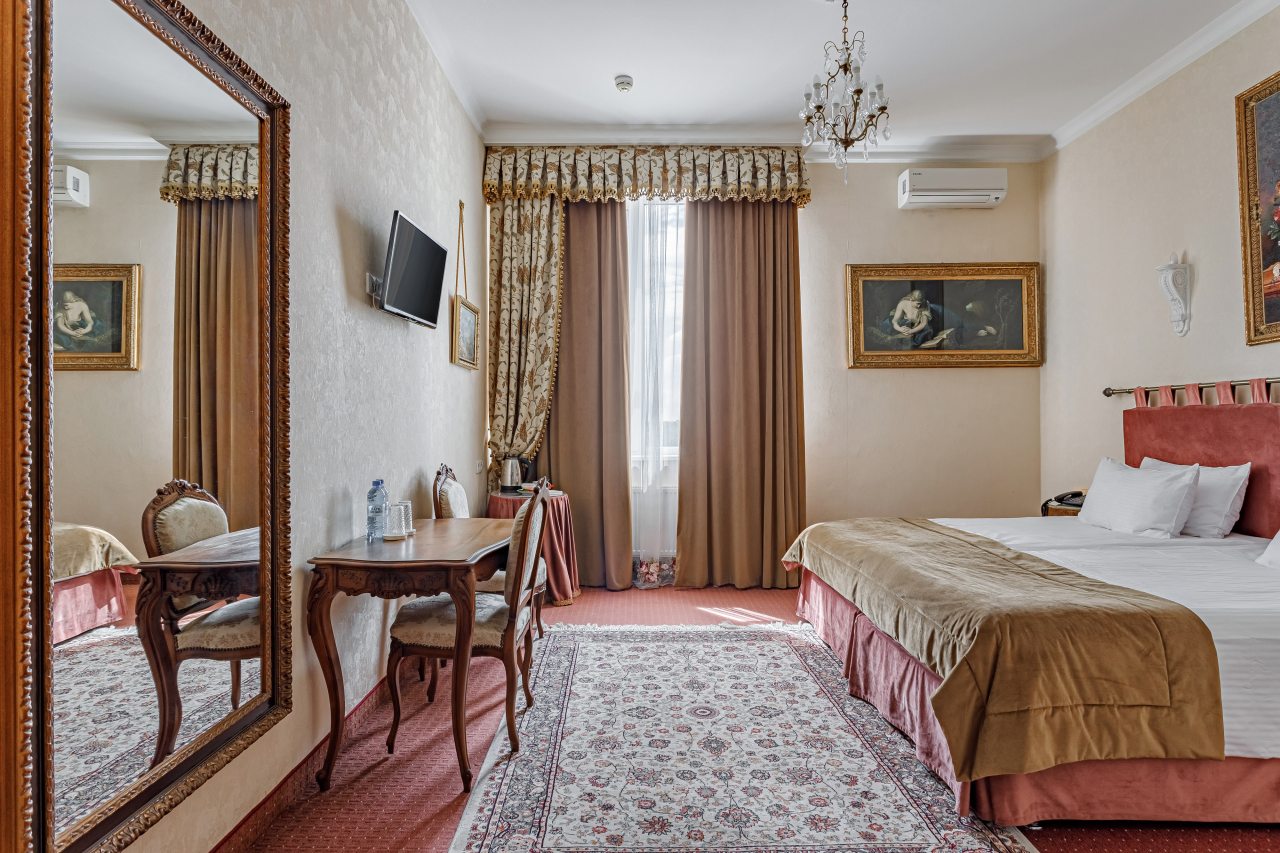 Отель Бристоль расположен в центре Краснодара. Он выглядит красиво внутри и не менее солидно снаружи. Классическая обстановка и шикарный интерьер прибавляют некоторую долю аристократизма. Мы занимали номер люкс, в котором присутствовала еще и шикарная резная мебель. В ванной комнате предоставлены халаты, тапочки, полотенца, средства гигиены. Достойный вариант, рекомендуем обратить внимание!