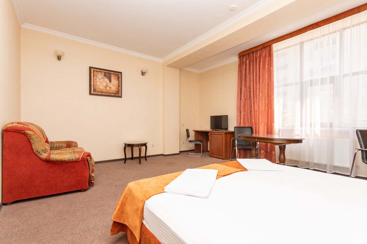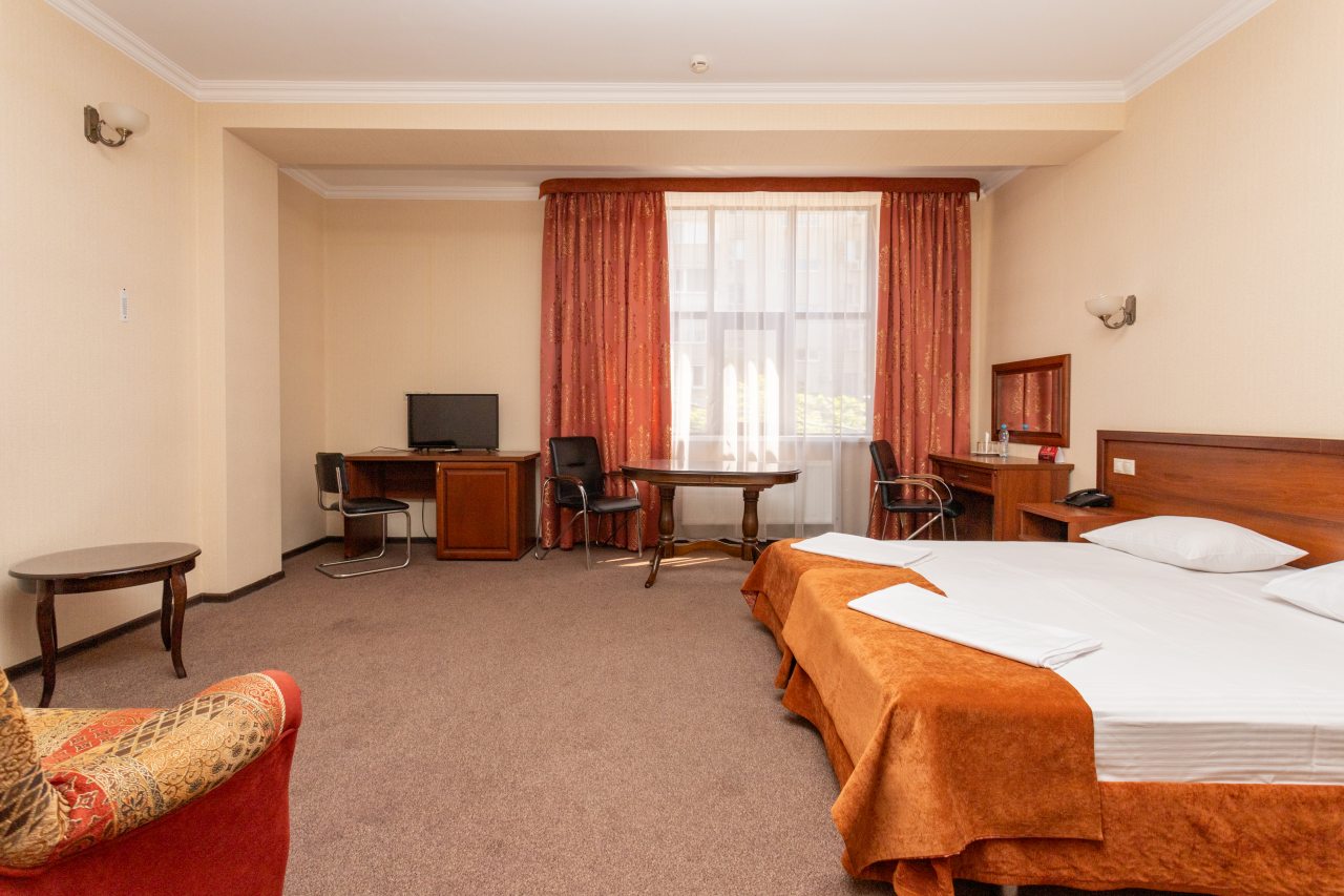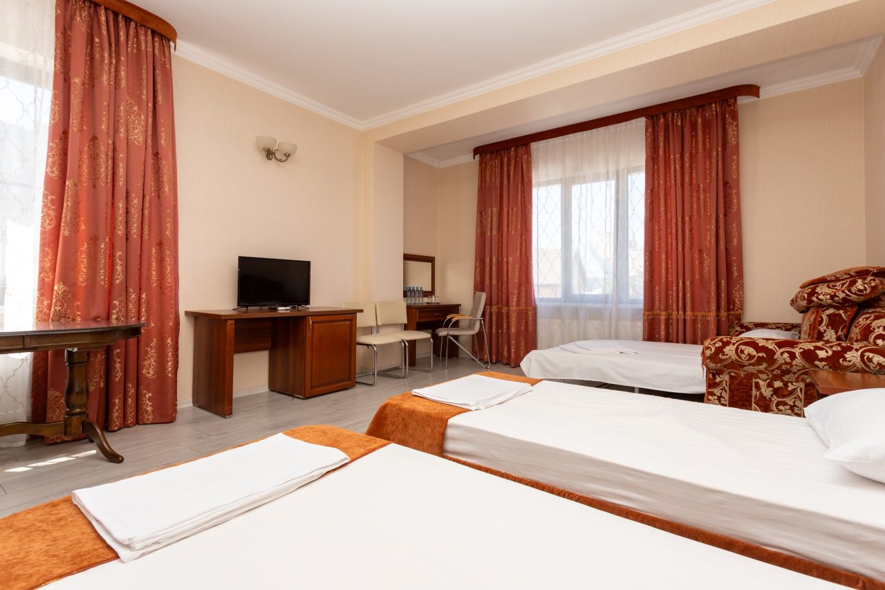 Гостеприимный директор гостиницы Тигран Агаронович, удобное и тихое место расположения, отличное обслуживание, чистые номера, приветливый персонал, питание как дома (очень вкусно), наличие лифта и парковки.