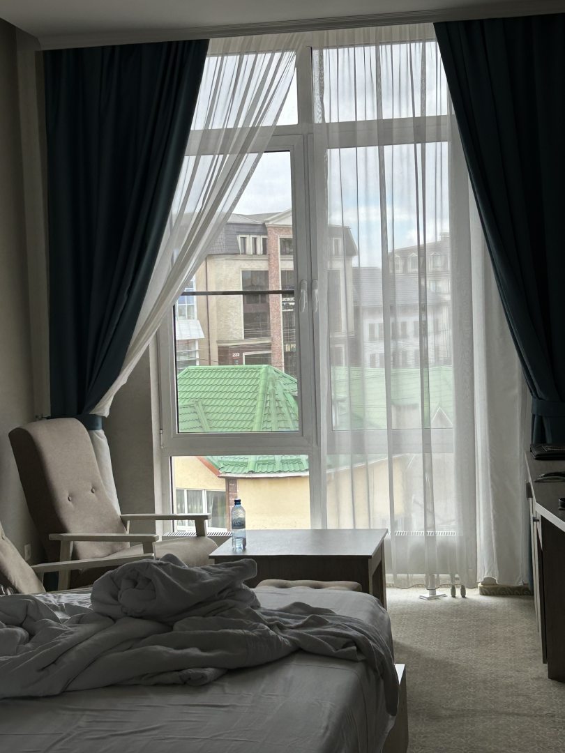 Просторный,стандартный номер на 4 этаже.С большой кроватью.Всё необходимое есть.Не совсем свежий ремонт,но всё чисто и аккуратно.Доброжелательность персонала на ресепшн и в ресторане особый момент.Приятно.Профессионально.Реально Молодцы.